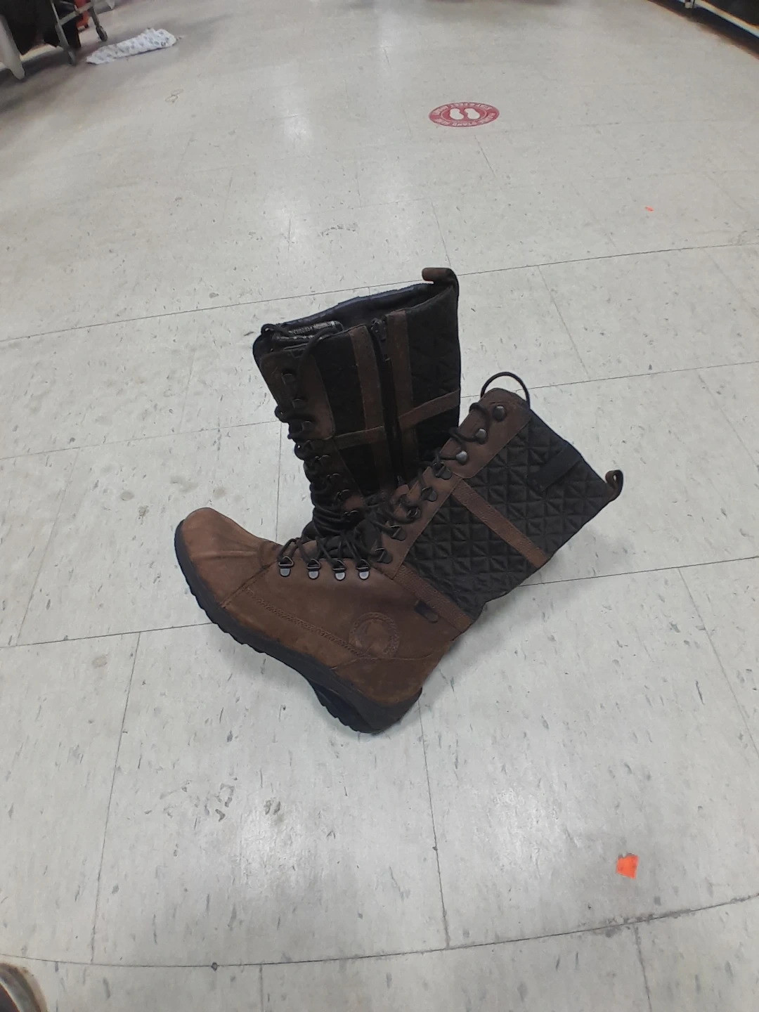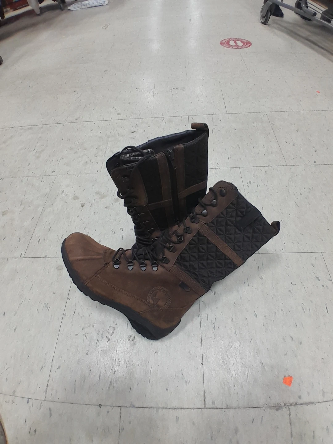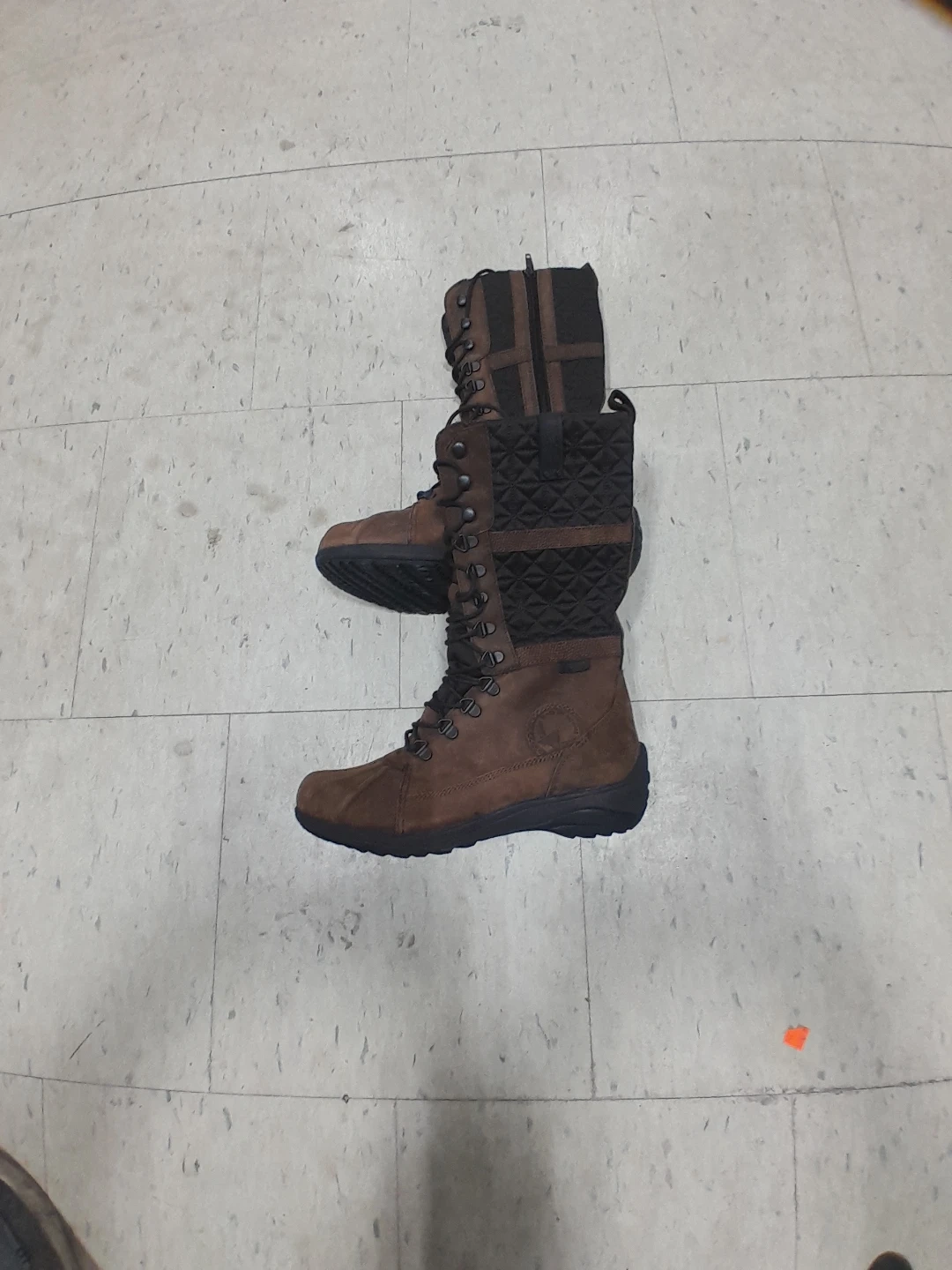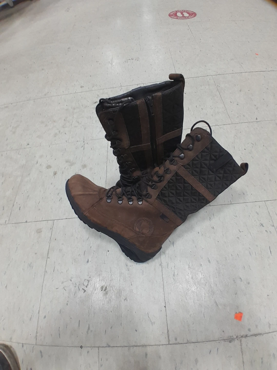 Tall winter boots are made with brown suede and feature quilted detailing on the shafts. They lace up the front and have side zippers for easy on and off. Perfect for keeping your feet warm and dry during the colder months! Original All Rounder Classic Size 8.5