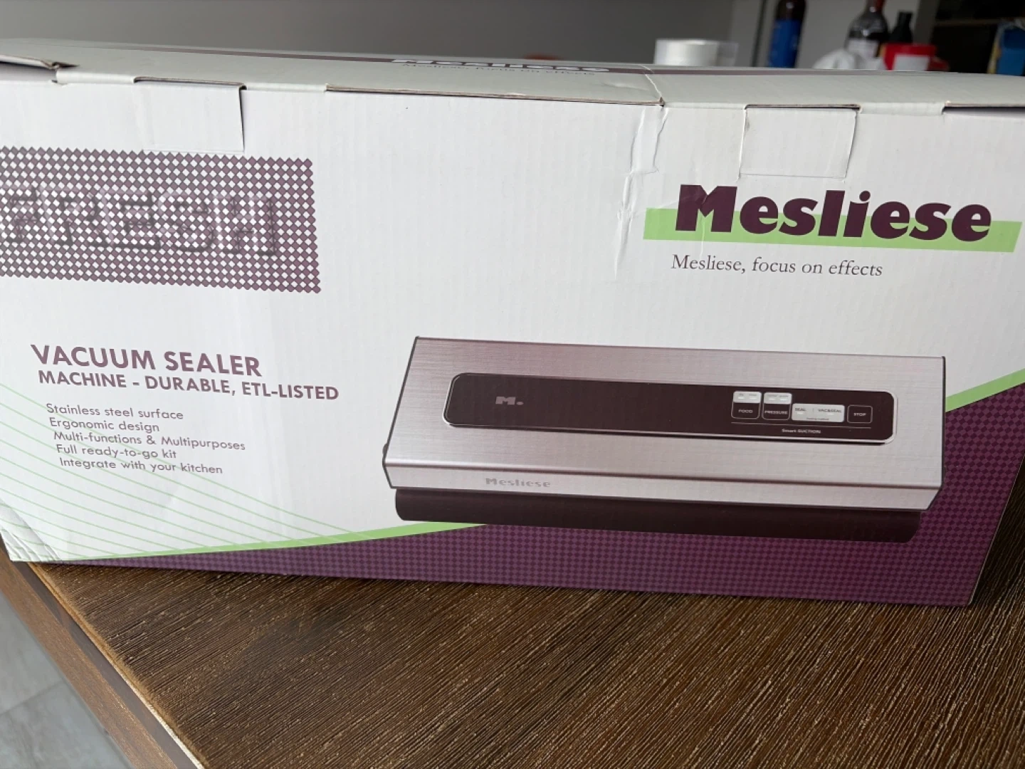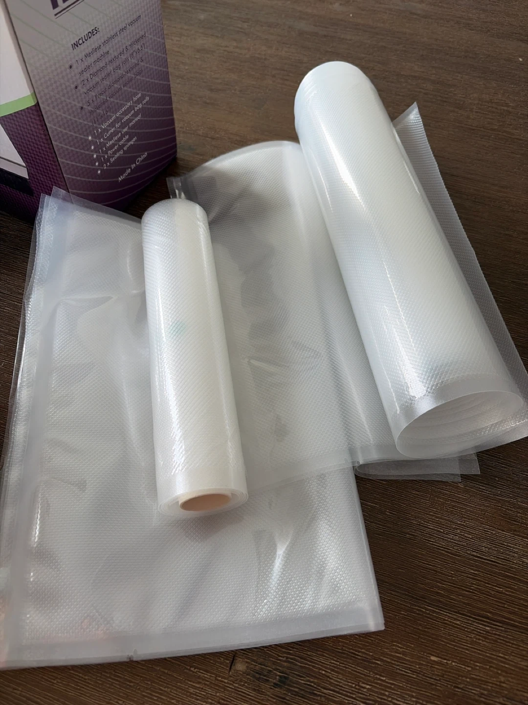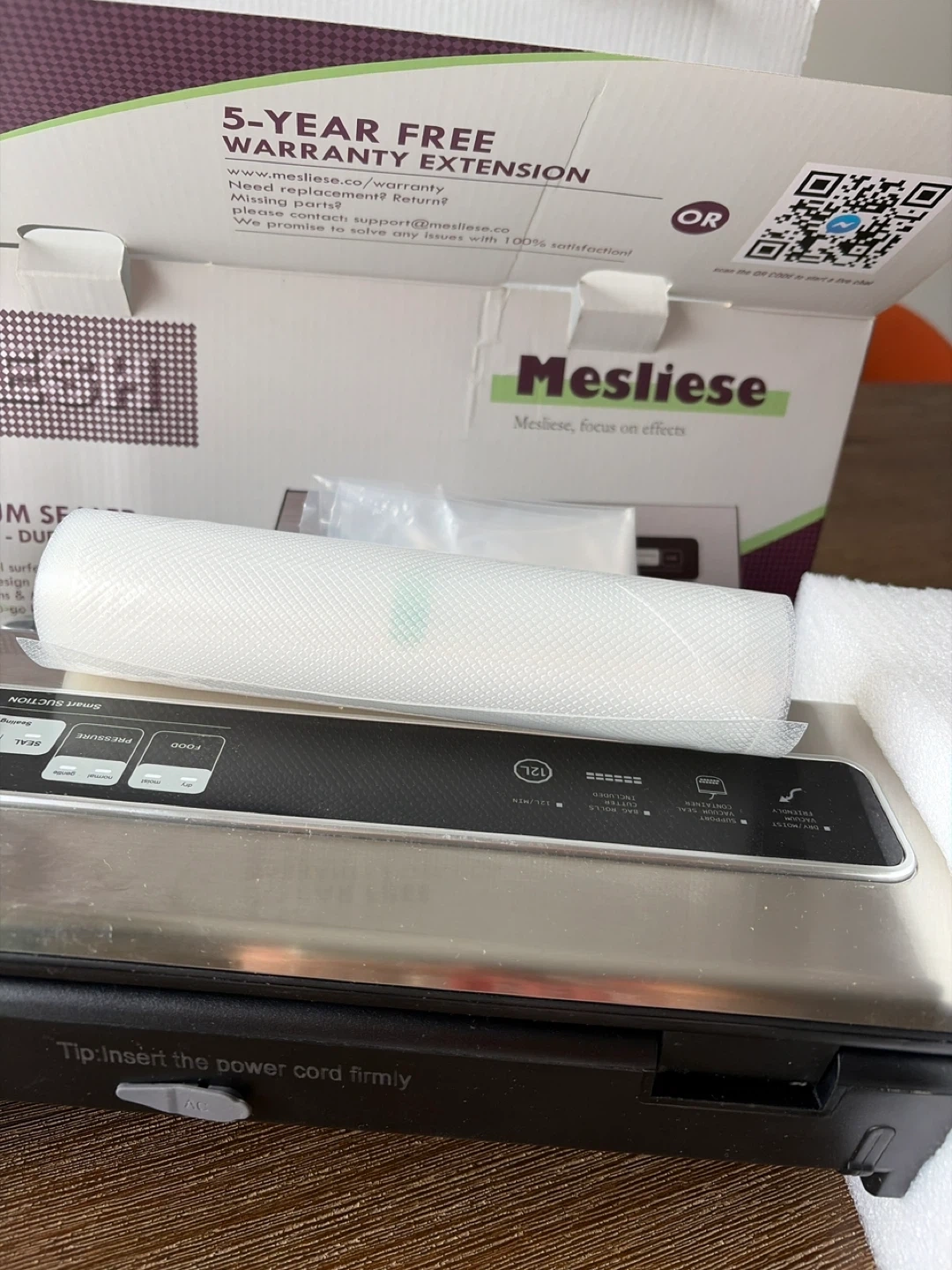 This Mesliese vacuum sealer machine is durable and ETL-listed. It features a stainless steel surface, ergonomic design, and multi-functions. Includes 1x stainless steel vacuum sealer, 1x roll of vacuum sealer bags, 2x vacuum sealer bags, and 1x power cord.