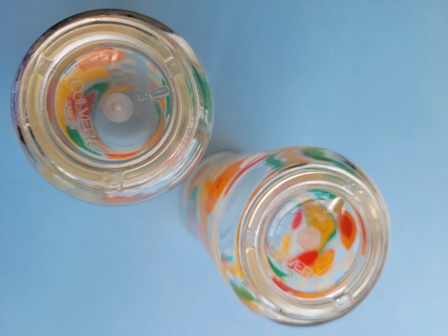 Add a splash of vintage charm to your kitchen with this set of two Culver Taiwan fruit-themed glasses! These glasses feature a delightful checkerboard pattern with vibrant fruit designs, perfect for adding a retro touch to your drinkware collection.