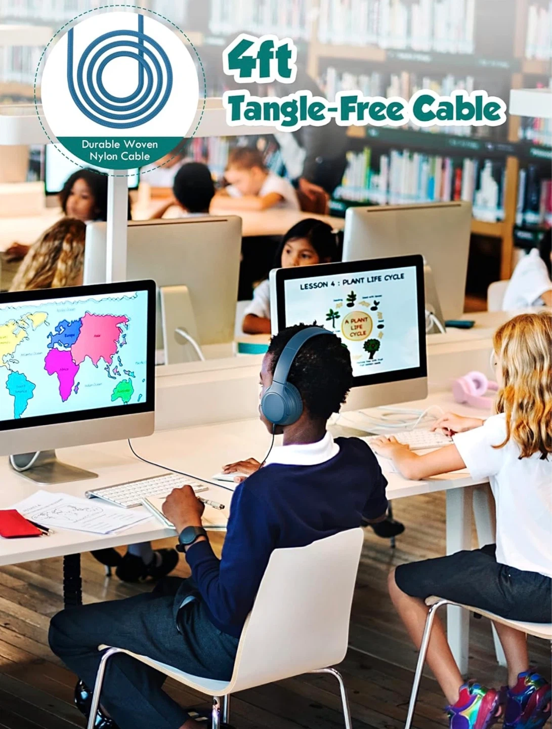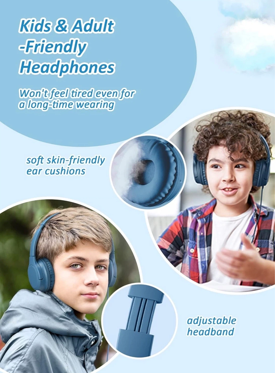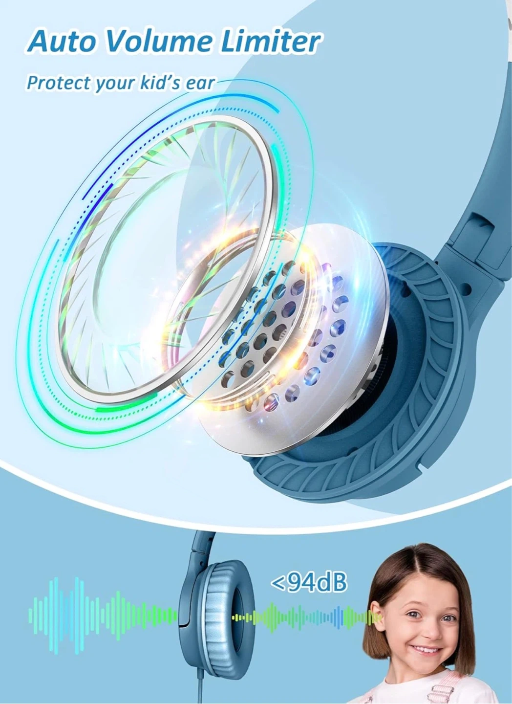 Kids Headphones Volume Limiter 94dB Wired Over-Ear Headset
