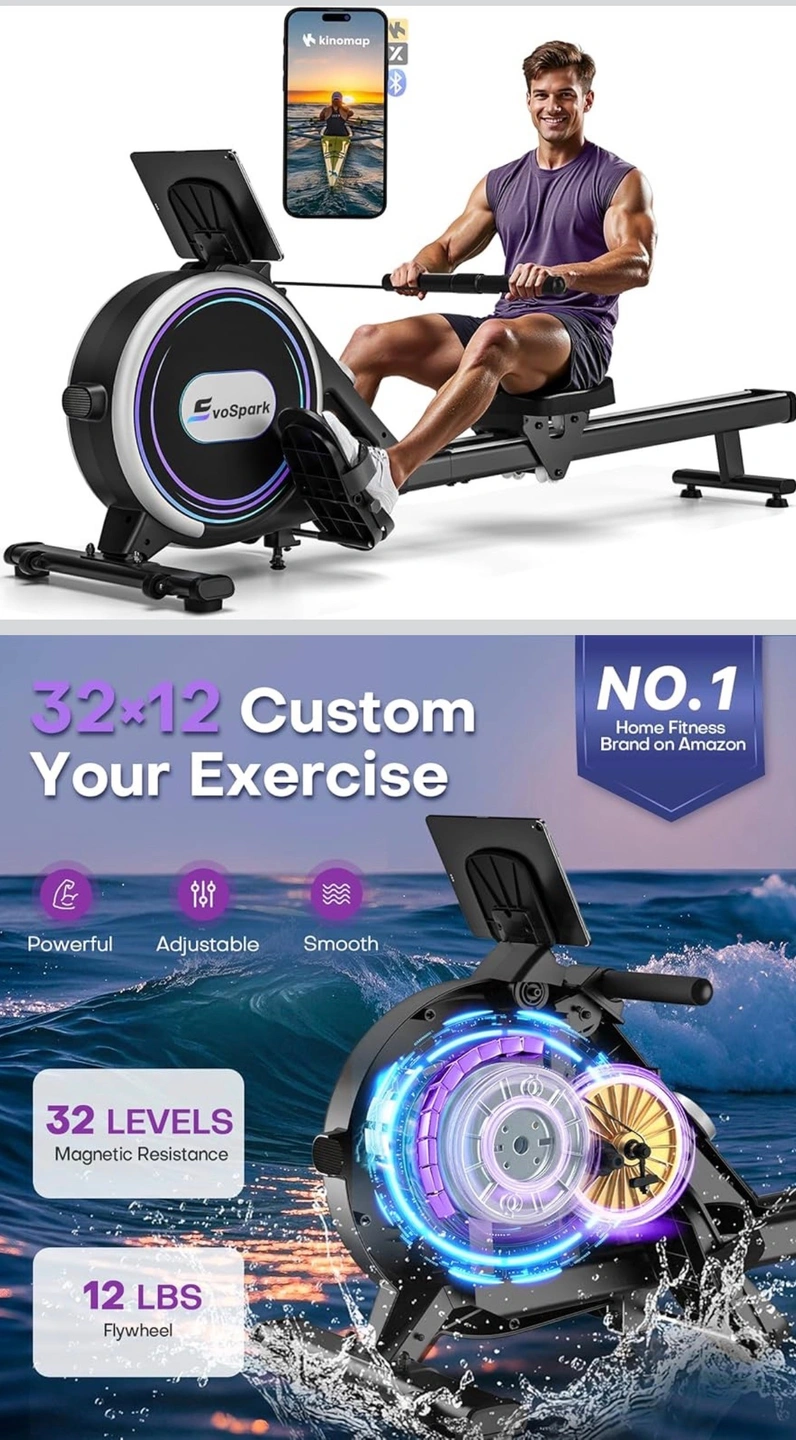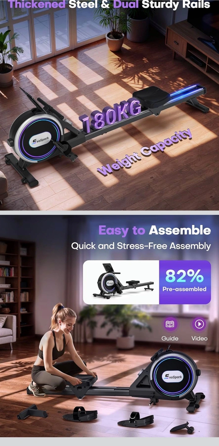 【Easy to Assemble and Store】We've simplified the assembly process for the home rowing machine, most users can easily assemble the rowing machine in 20 minutes. With its small footprint, the EvoSpark magnetic rowing machine saves 80% of storage space when stored upright. Equipped with wheels for effortless movement, allowing you to conveniently set up the machine in your workout area.