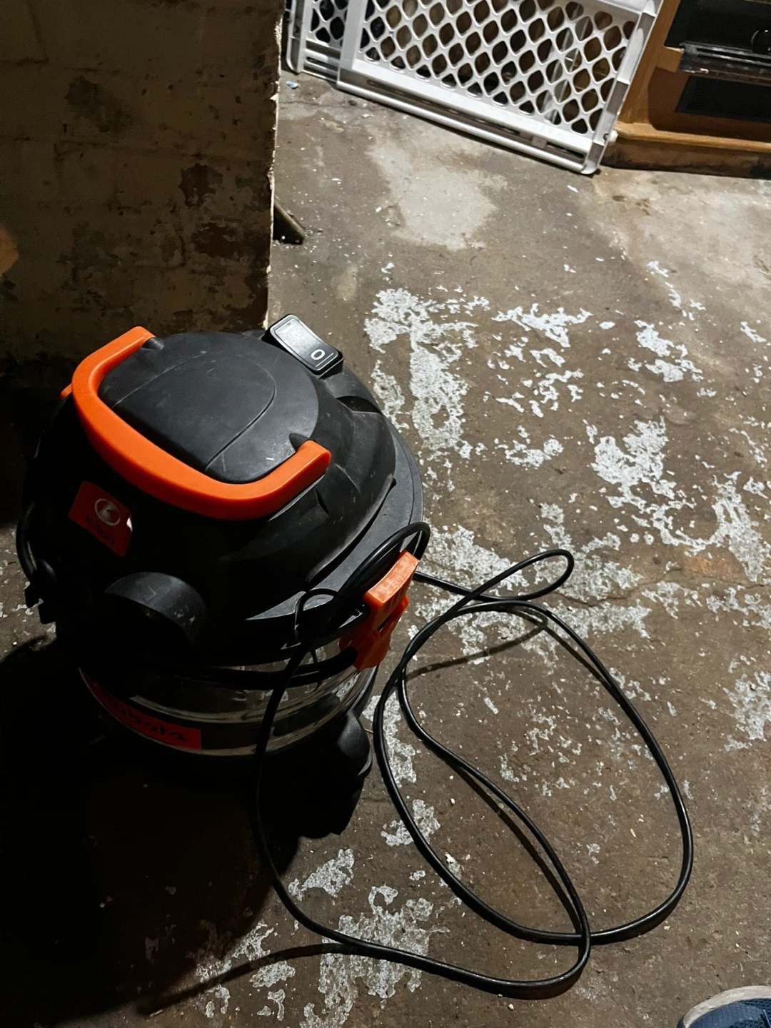 Selling a Kubota wet/dry vacuum. It's in good working condition and ready to tackle any mess. Perfect for garage cleanups, car detailing, or any spills around the house. It's a reliable and sturdy vacuum to have on hand