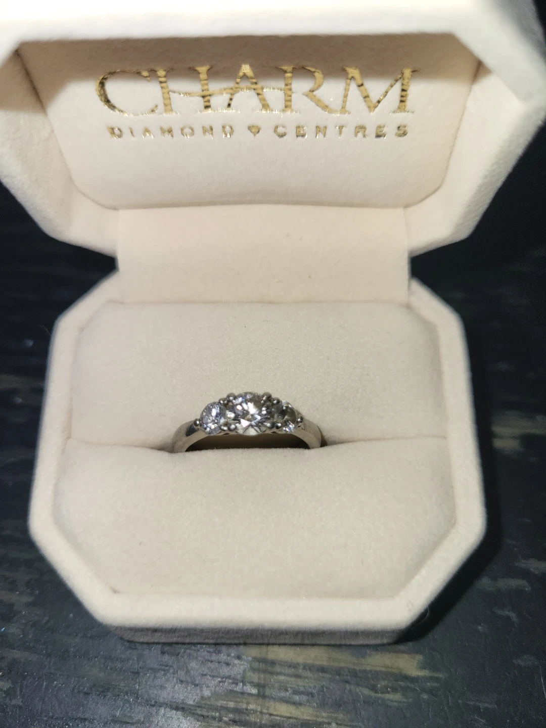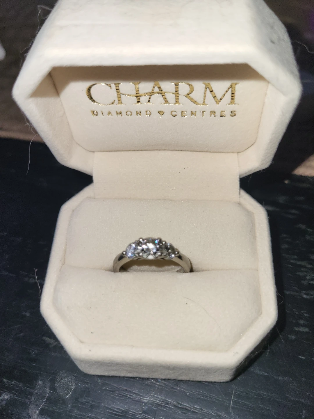 Buy & SellCharm Diamond Centres Ring 1.75 karate, platinum settingCharm Diamond Centres Ring 1.75 karate, platinum setting$1,525A beautiful diamond ring from Charm Diamond Centres. It features three sparkling stones set in a silver-toned band. Comes in its original box.WHERE TO MEETCheck LocationView MapSELLERverifiedSharronSt. Thomas600 reviews0 chats·0 favorites·1 viewsSEND CHAT TO SELLERHi Sharron! I’m interested in your listing.Hi Sharron! I’m interested in your listing.Get the Karrot app to chatSign In to chat