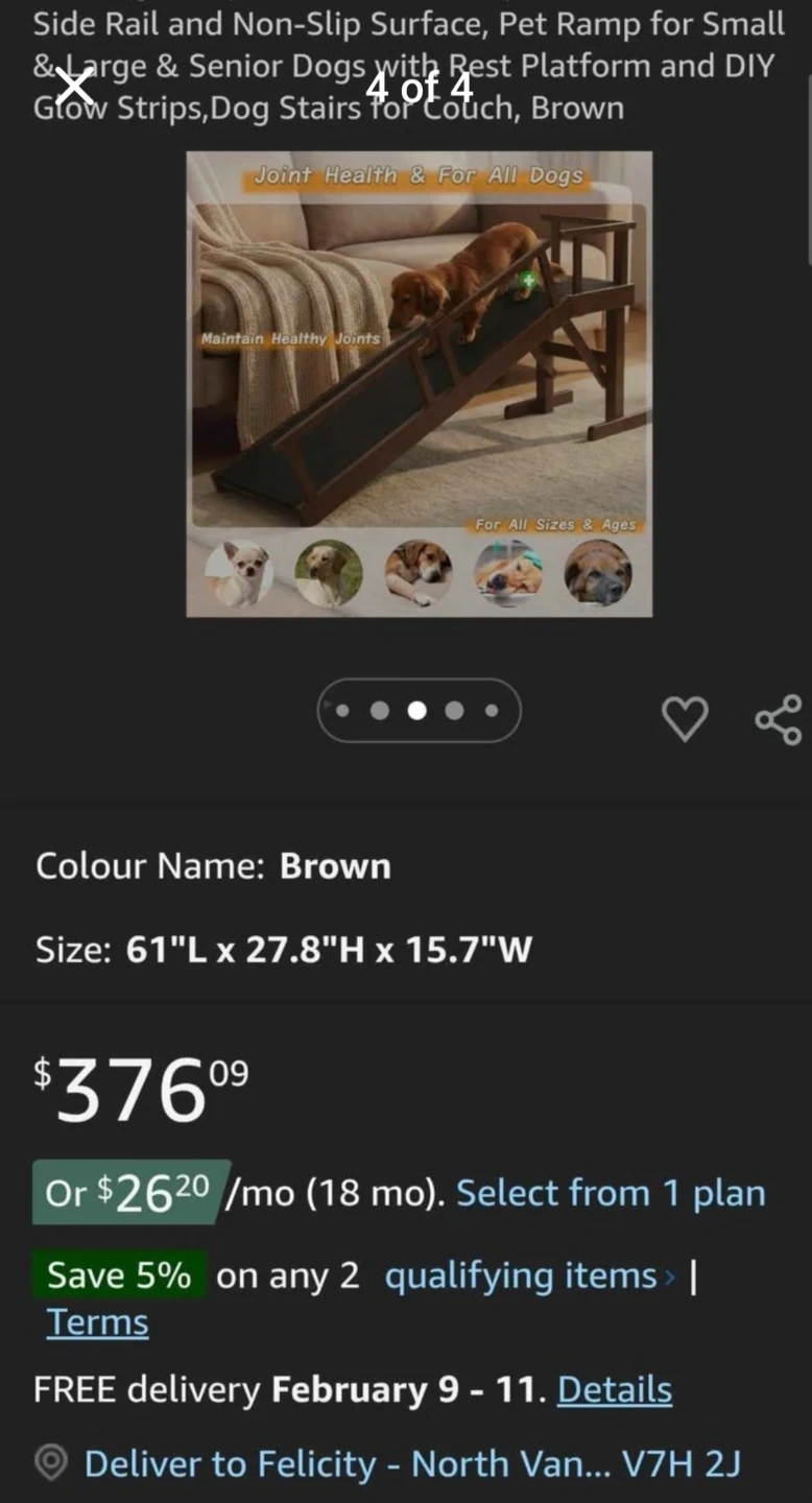 61" Dog Ramp: Non-Slip, Brown "๐" like new
