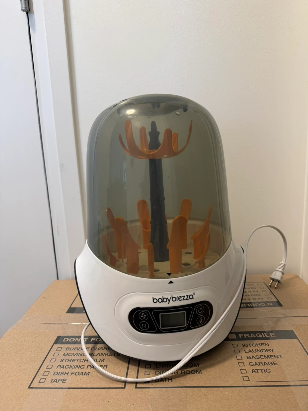 This Baby Brezza sterilizer and dryer helps to keep baby bottles and accessories clean. It's designed for efficient drying and sterilization. Useful for ensuring hygiene for baby's feeding items.