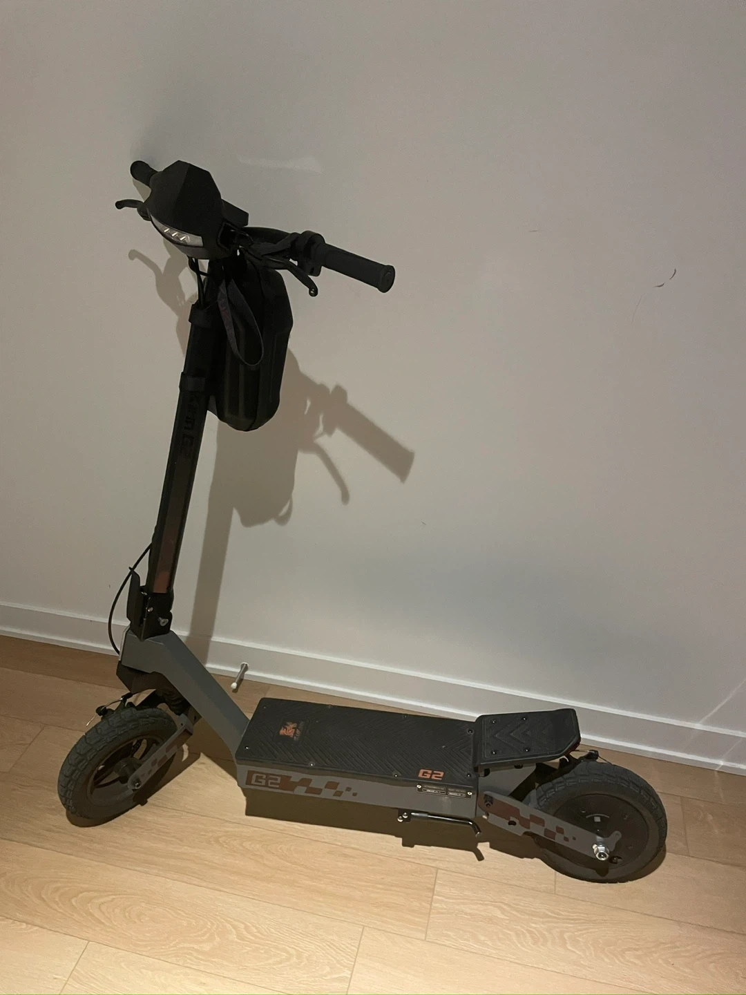 25Selling my KuKirin G2 electric scooter in excellent, like-new condition. Only 600 km total mileage – barely used Top speed: up to 50 km/h Range: up to 55 km per charge Comes with original charger, carry bag, and lock included First come first serve Open to offers and trades Message if interested if ad is up it’s available