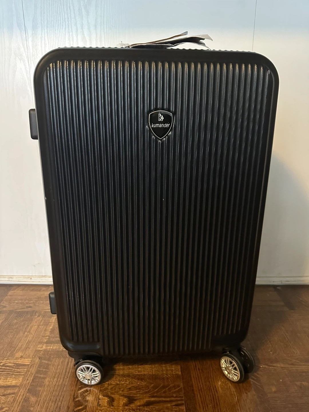 10Looking to sell a Kumander carry-on luggage in black! It's in great condition and ready for your next trip. Perfect size for carry-on and easy to maneuver with its wheels. Height 24”, Length 15”, Width 10”