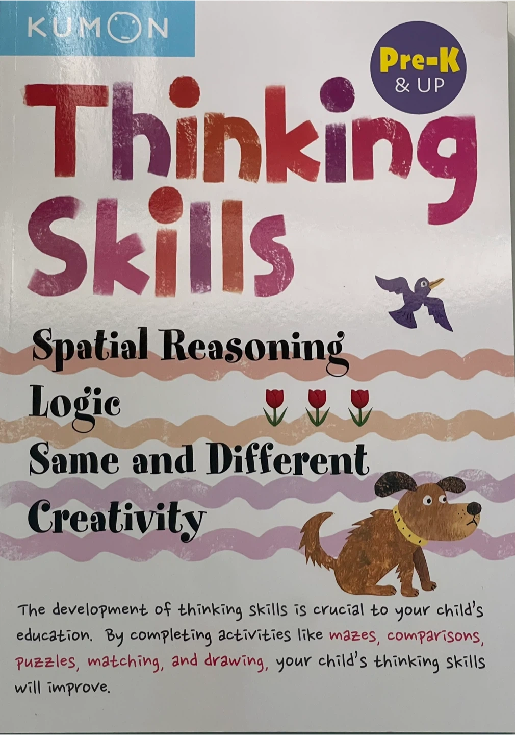 10This Kumon Thinking Skills Pre-K workbook is designed to offer your child a comprehensive foundation for strengthening their thinking skills. It includes Spatial Reasoning, Logic, Same and Different, and Creativity exercises. Activities include tracing, mazes, drawing directions, jigsaw puzzles, copying shapes, comparing height, and coloring patterns