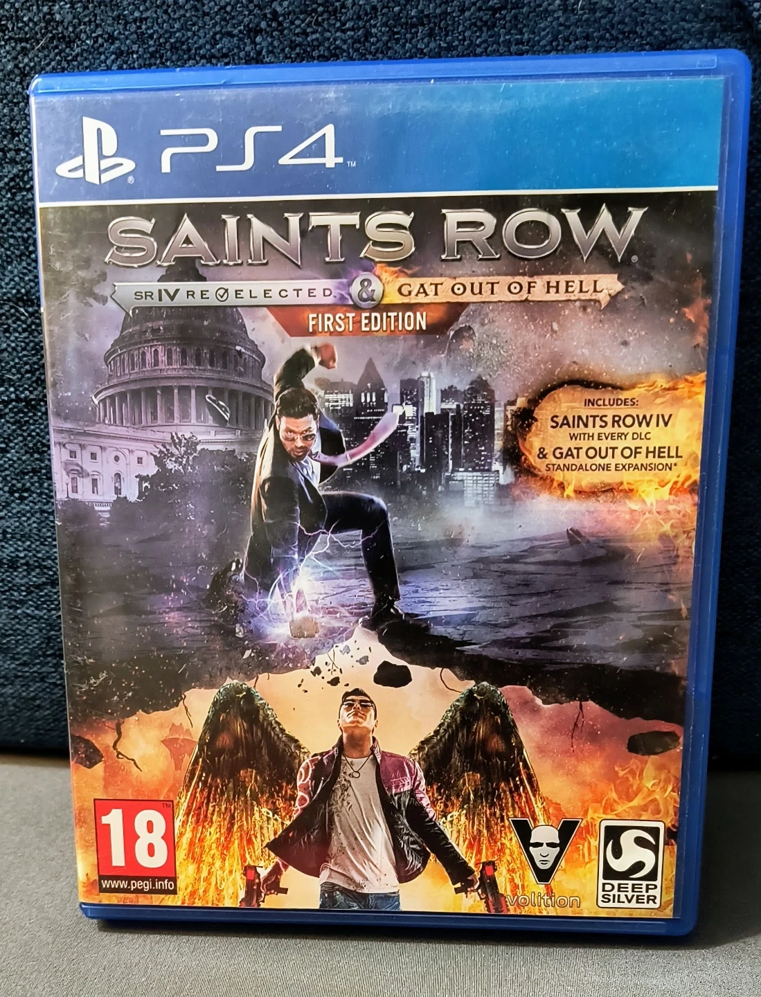 This is the First Edition of Saints Row IV: Re-Elected and Gat Out of Hell for PlayStation 4. It includes Saints Row IV with every DLC and the Gat Out of Hell standalone expansion.
