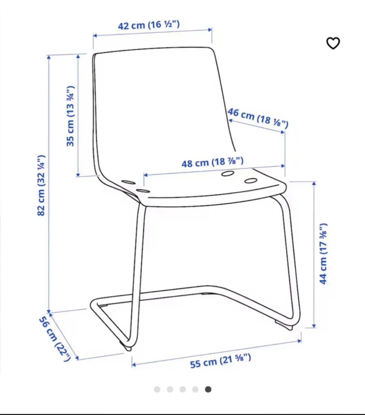 Measurements: Tested for: 110 kg (243 lb) Width: 55 cm (21 5/8 ") Depth: 56 cm (22 ") Height: 82 cm (32 1/4 ") Seat width: 48 cm (18 7/8 ") Seat depth: 46 cm (18 1/8 ") Seat height: 44 cm (17 3/8 ")