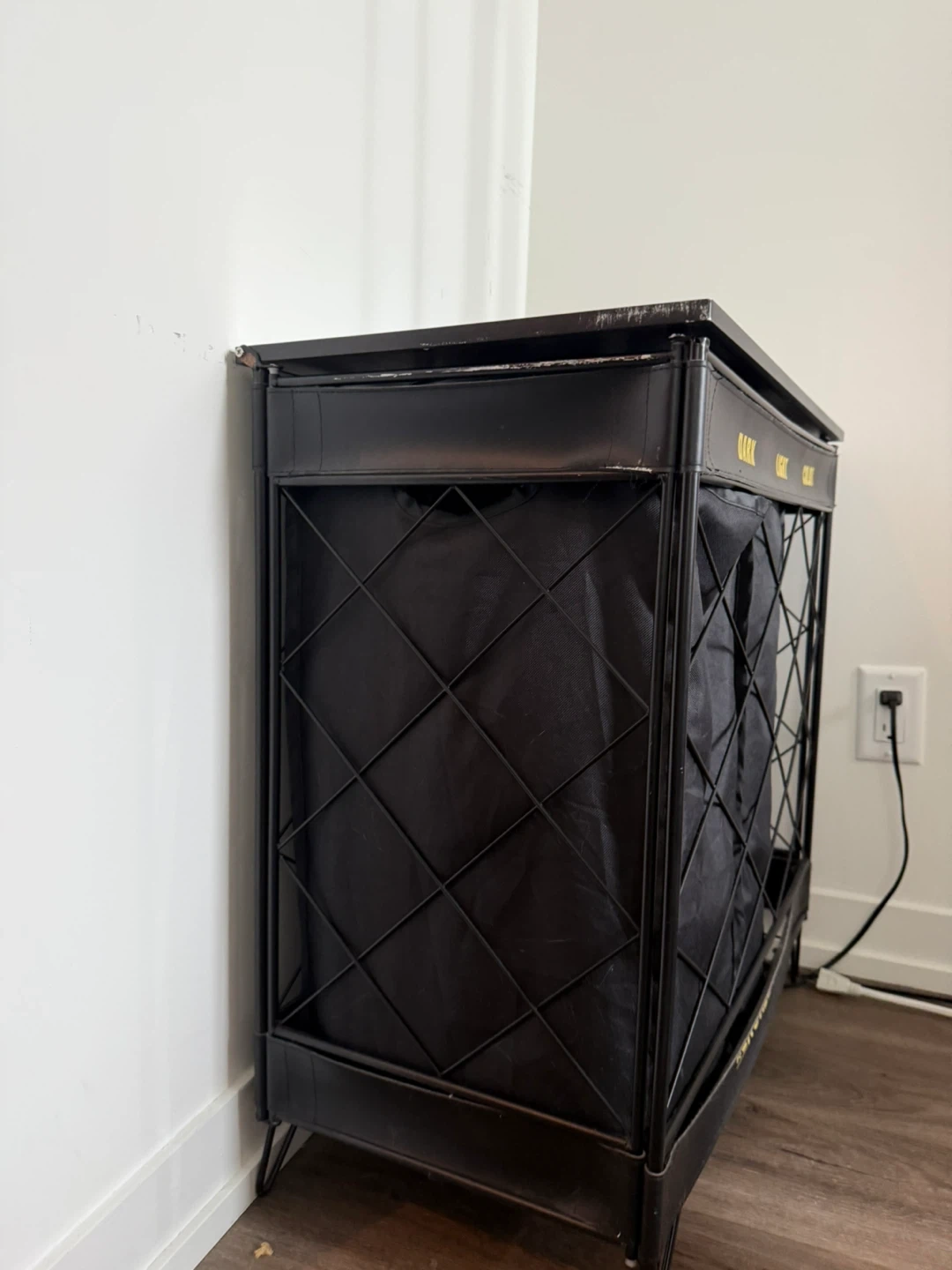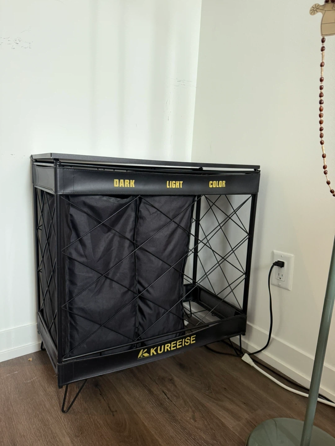 17Looking to declutter your laundry space? I'm selling a Kureeise 3-section laundry sorter. It's designed with compartments for darks, lights, and colours, making laundry day a breeze. The black finish gives it a sleek look that fits well in any room. Perfect for keeping your clothes organized before washing! It comes with 3 laundry bags to sort your clothes