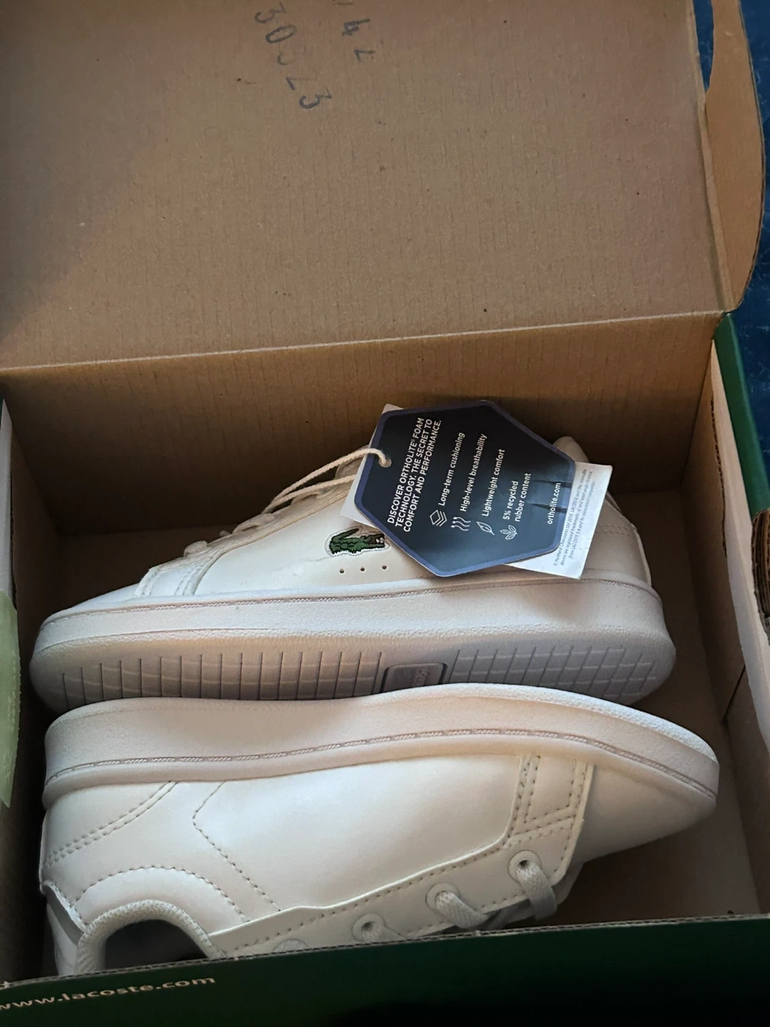 These white leather Lacoste Little Chimpion shoes are perfect for little ones. They feature a secure strap closure for easy on and off. The durable rubber sole provides good traction for active toddlers. These shoes offer comfort and style for everyday wear!
