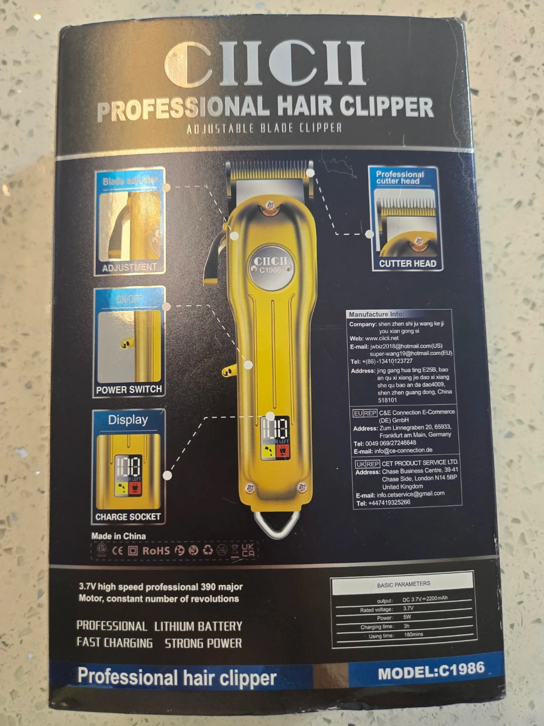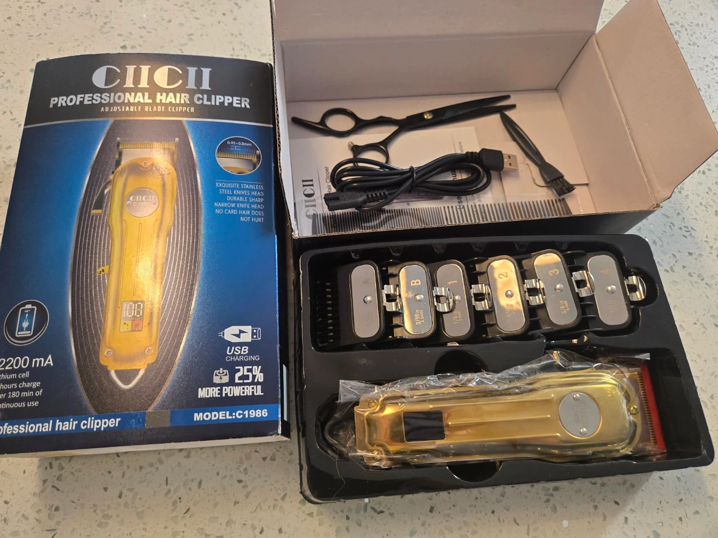 Selling a brand new CIICII Professional Hair Clipper. It's still in its original box and includes all the components:
