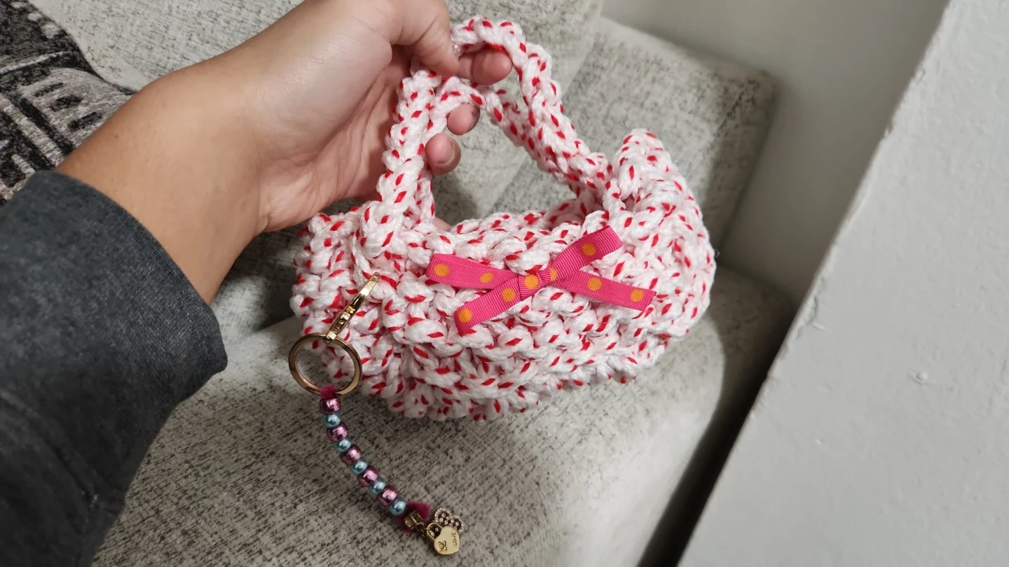 Adorable handmade crochet baby shoes, perfect for tiny feet. Also a cute, small crochet bag with a ribbon accent. Shoes are crafted with soft yarn.