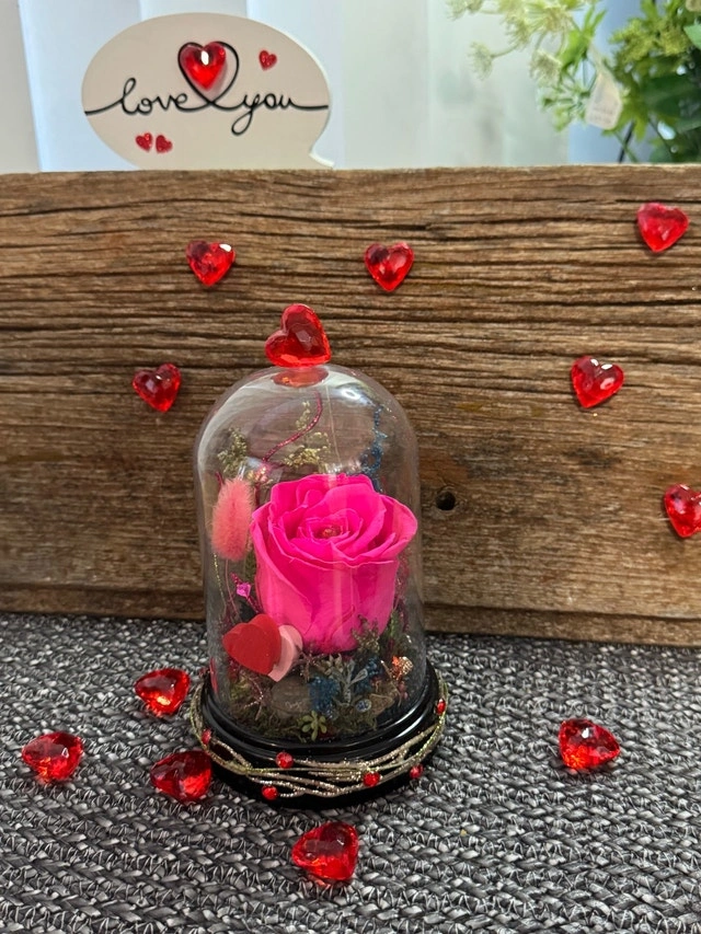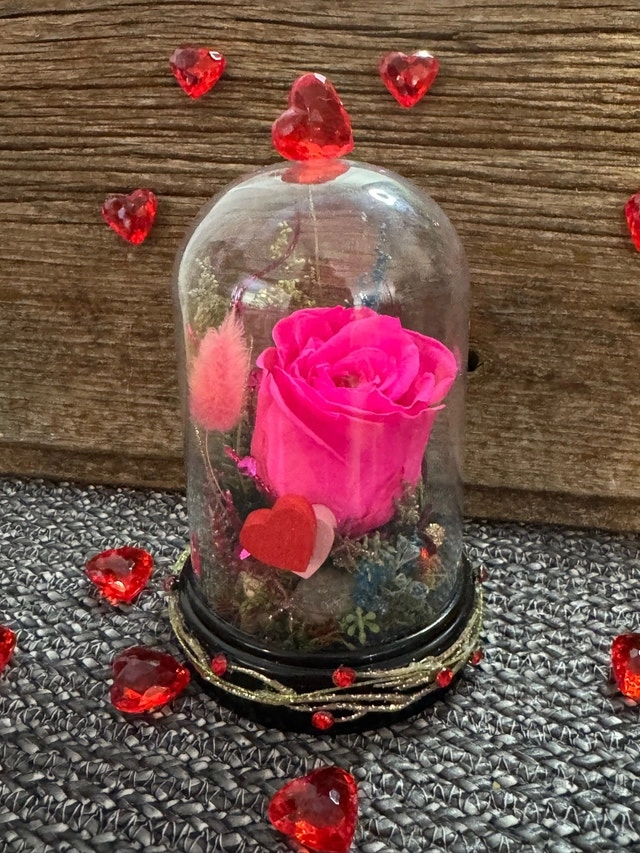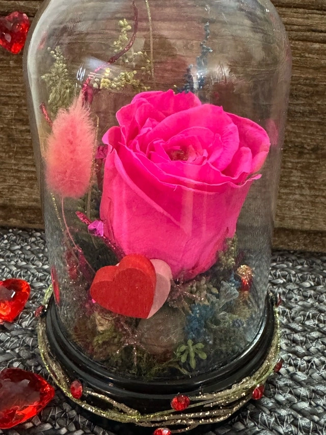 This radiant eternal rose is encased in a cloche, a symbol of everlasting love and beauty. It's a striking piece that captures the essence of romance, perfect for Valentine's Day or for adding a touch of elegance to any space. This beautiful rose is ready to brighten up your home or to gift to someone special. Additional details include: Vibrant pink colour, Acrylic dome, Intricate detailing. Similar items typically sell for $30-$60. Please check my other listings. If the ad is up, it's still available!