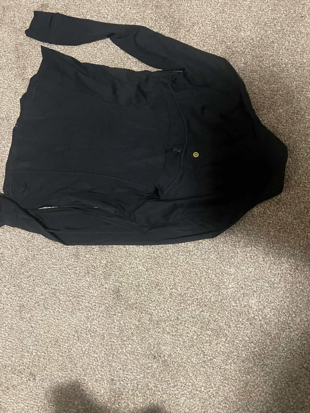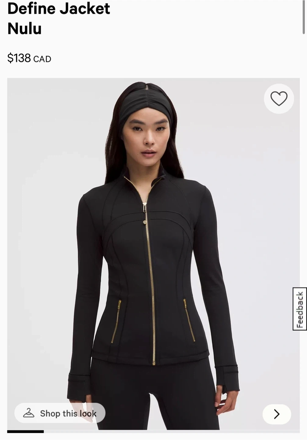 This is a Lululemon Define Jacket in Nulu fabric and black. It has a full zip closure and zippered pockets. Thumbholes are built into the cuffs.