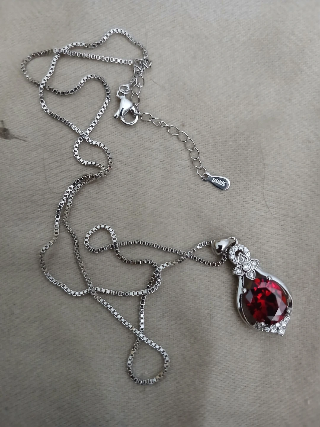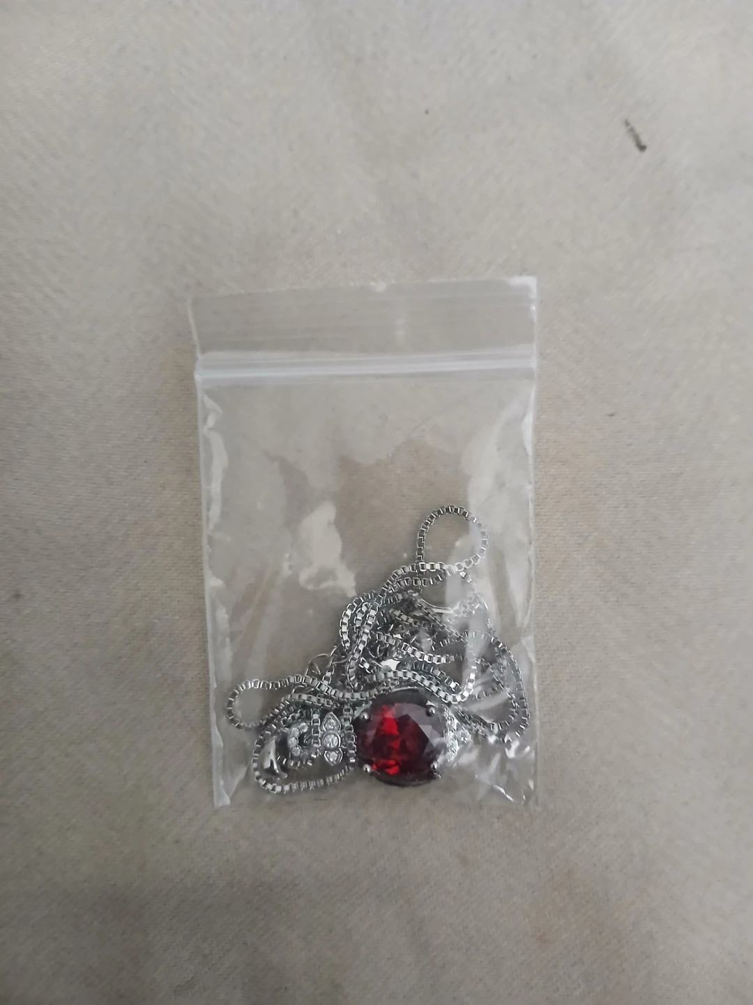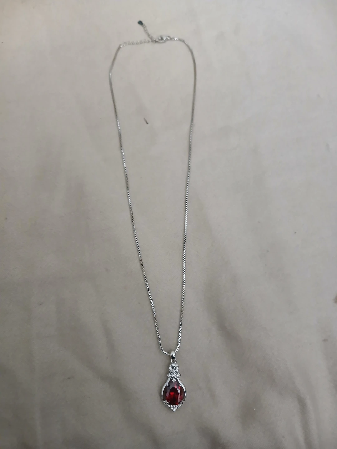 Brand new 925 silver, lab grown ruby, and synthetic zirconia pendant necklace. Cash only. Pick up or meet up in public. Willing to bargain on the price.
