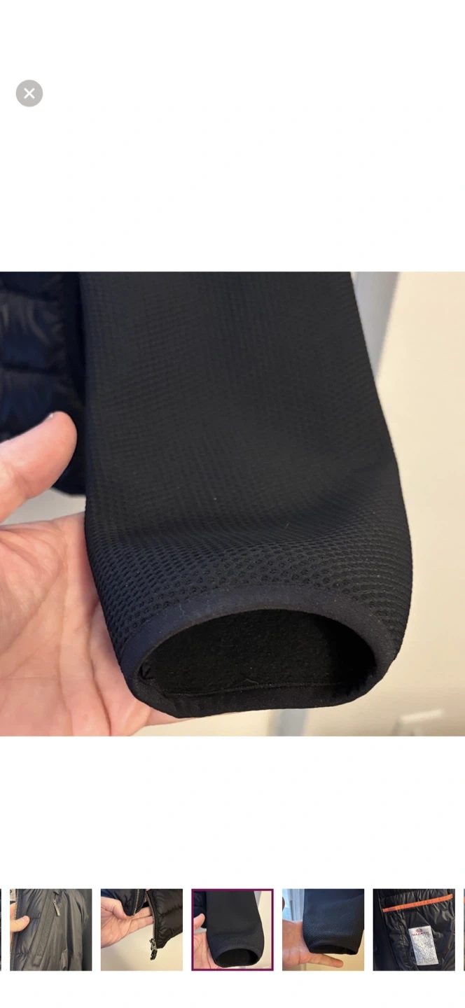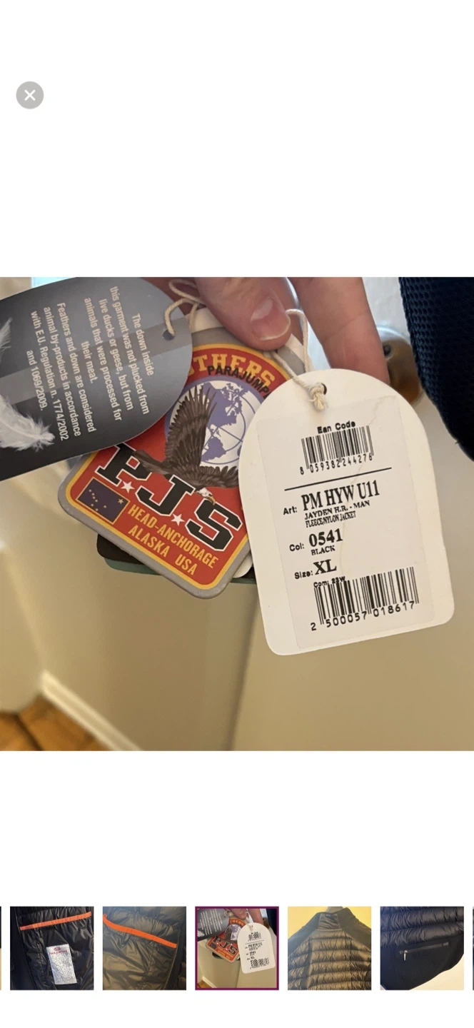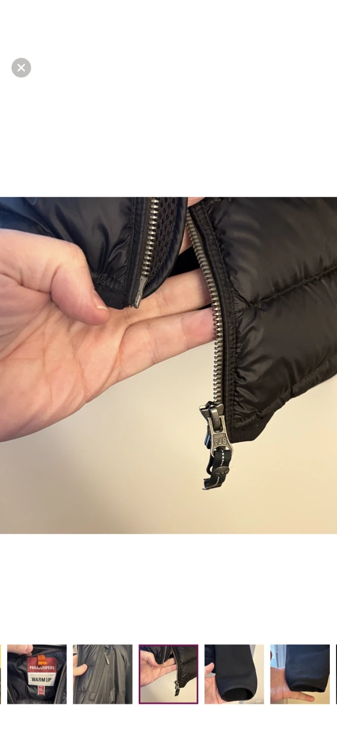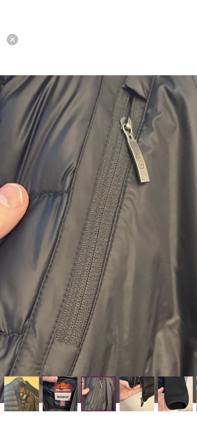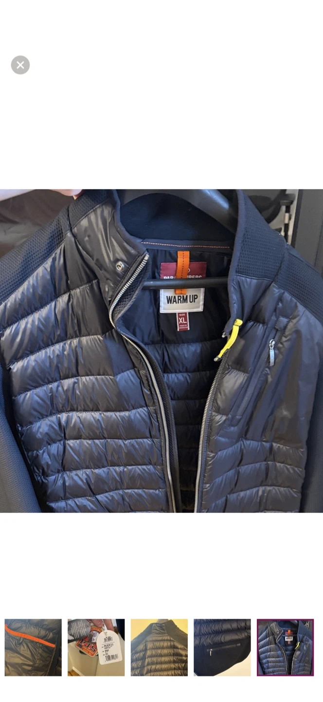 Parajumpers down puffer jacket in black, size XL. It features a full zip closure and multiple pockets. It's a warm and stylish outerwear option. The official name to this jacket is the Jaden hybrid jacket keep in mind that XL fits like a large.