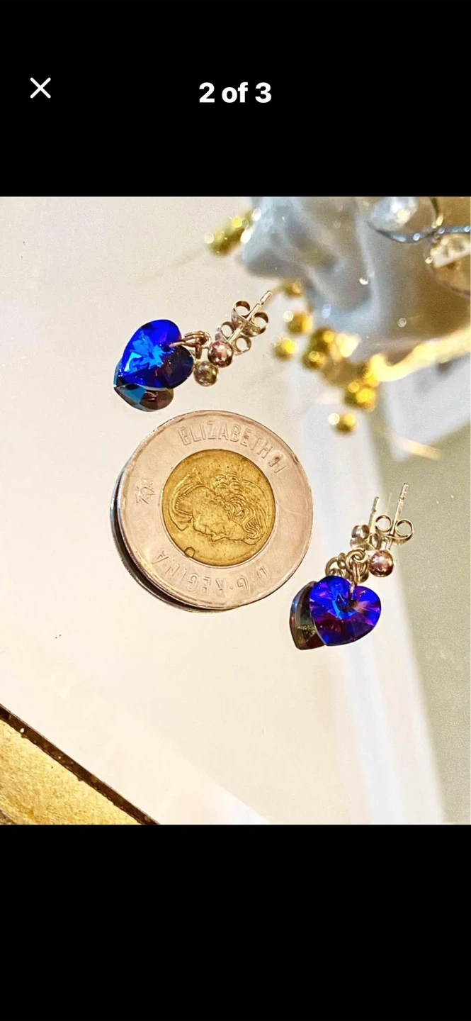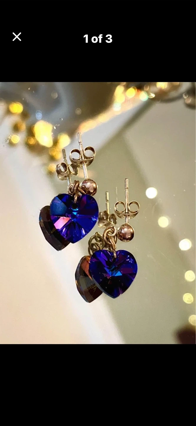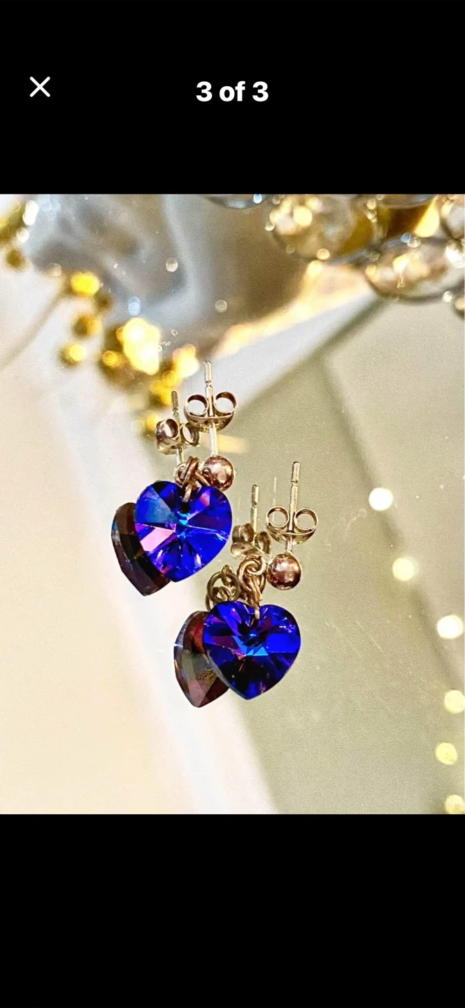 💙Sparkly Swarovski Crystal Cobalt blue heart-shaped dangle earrings. 💙They catch the light beautifully. These would be lovely for a night out!
