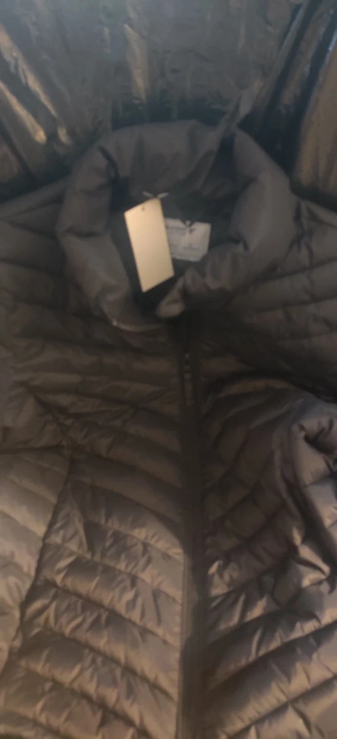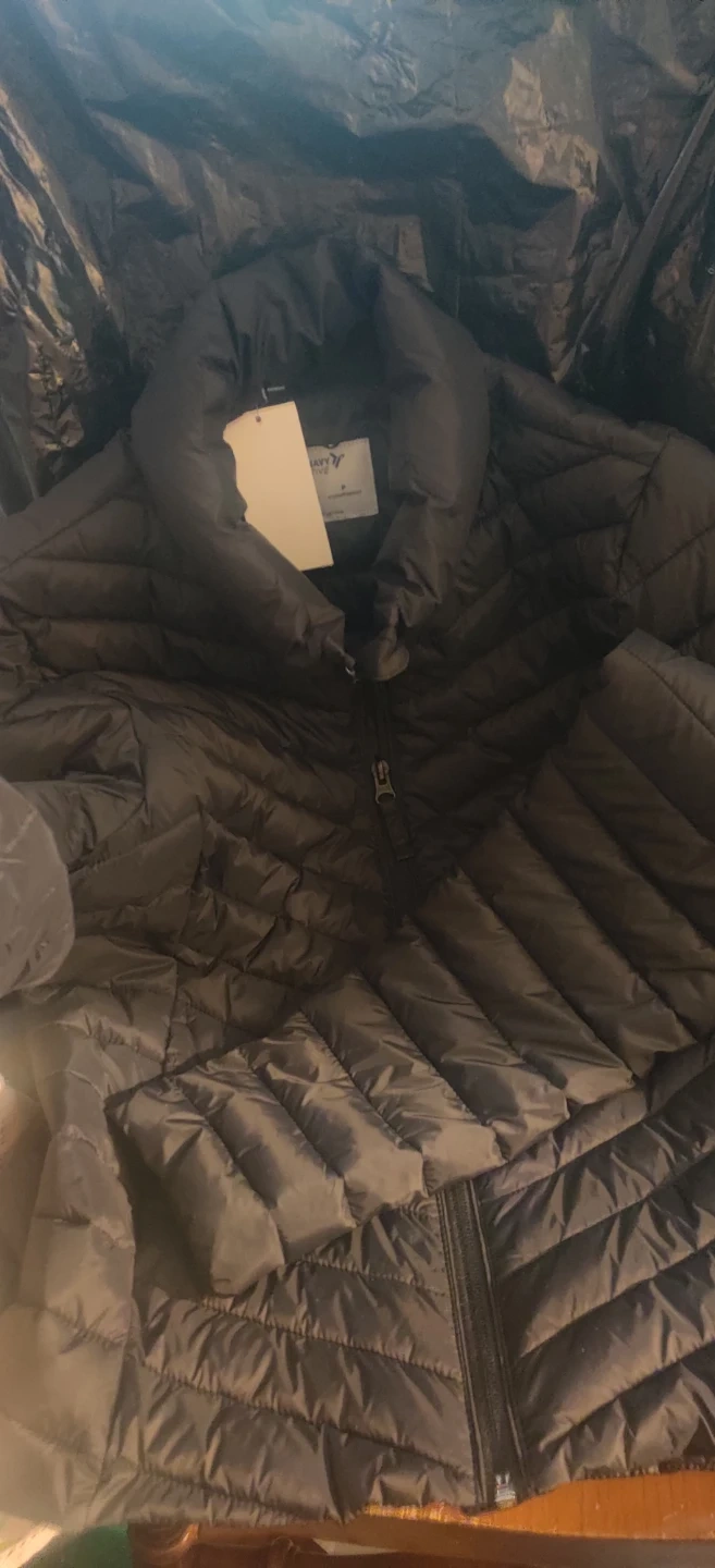 Water-resistant puffer jacket from Old Navy Active. Made in Vietnam. It's a size small.Doesnt have a hood. Great for those not so freezing days