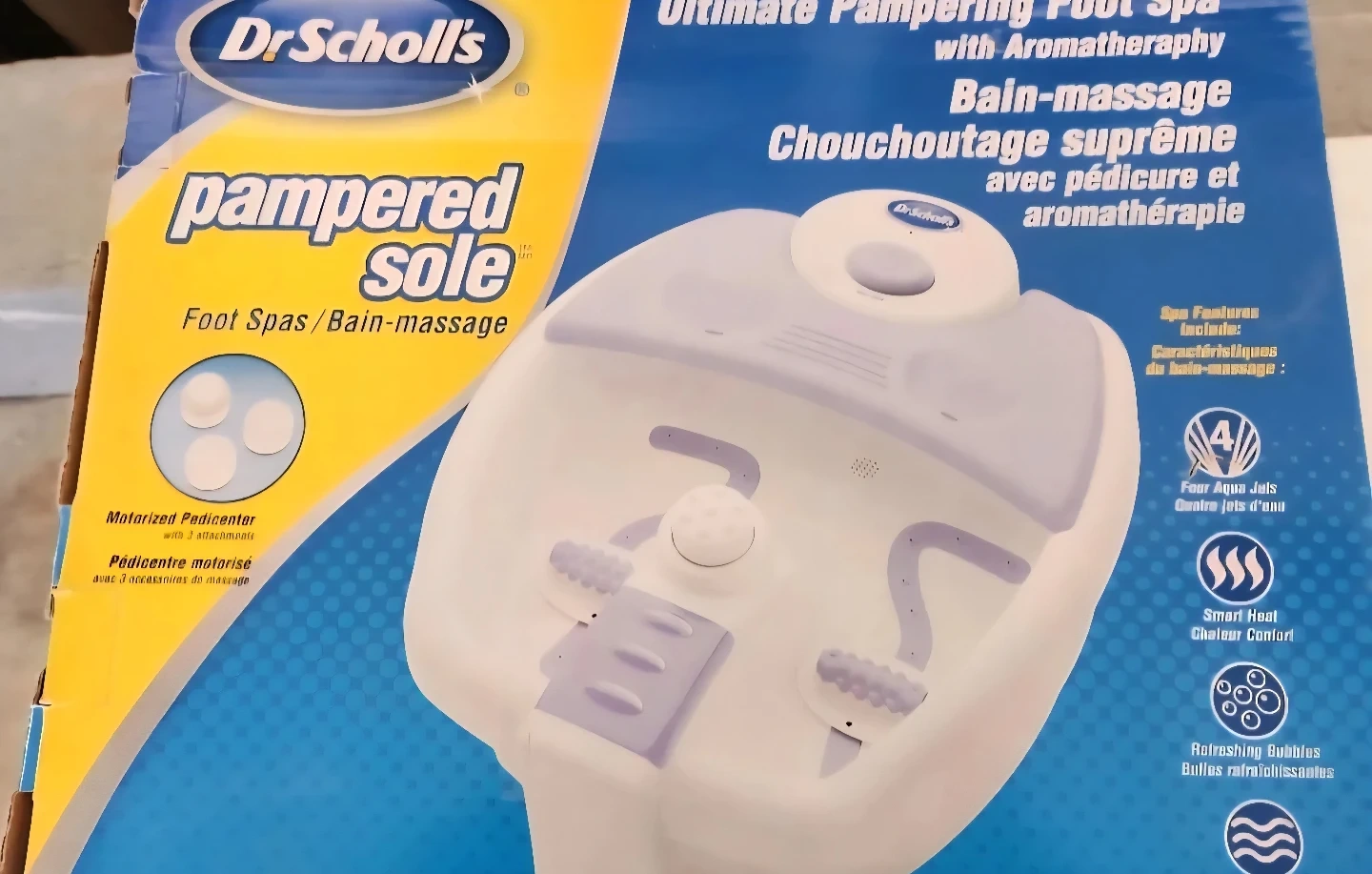 Pamper your feet with the Dr. Scholl's Pampered Sole Foot Spa. It features aromatherapy, a motorized pedicenter with 3 attachments, and 4 aqua jets for a relaxing massage. Enjoy smart heat and refreshing bubbles for ultimate comfort!