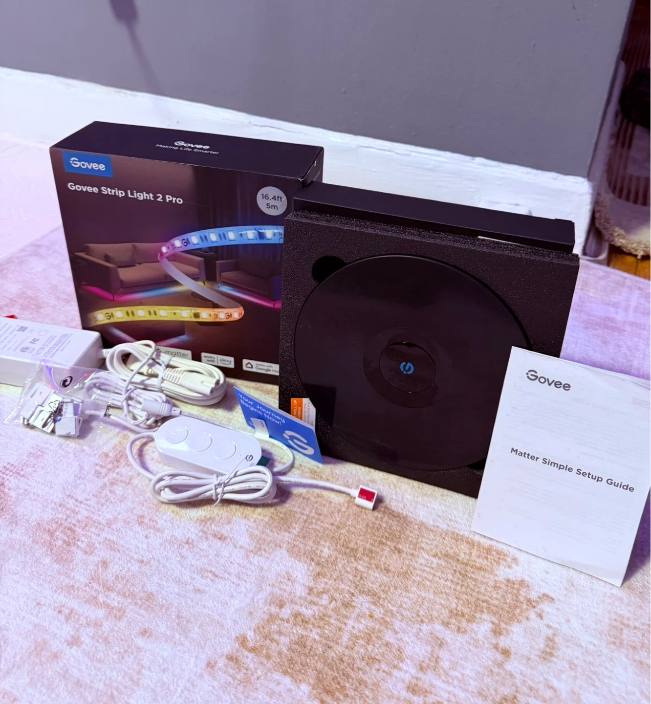 This is a Govee RGBIC Smart LED Strip Light 2 Pro, measuring 16.4ft. It comes with the original box and all included components. It's compatible with Matter, Alexa, and Google Assistant.