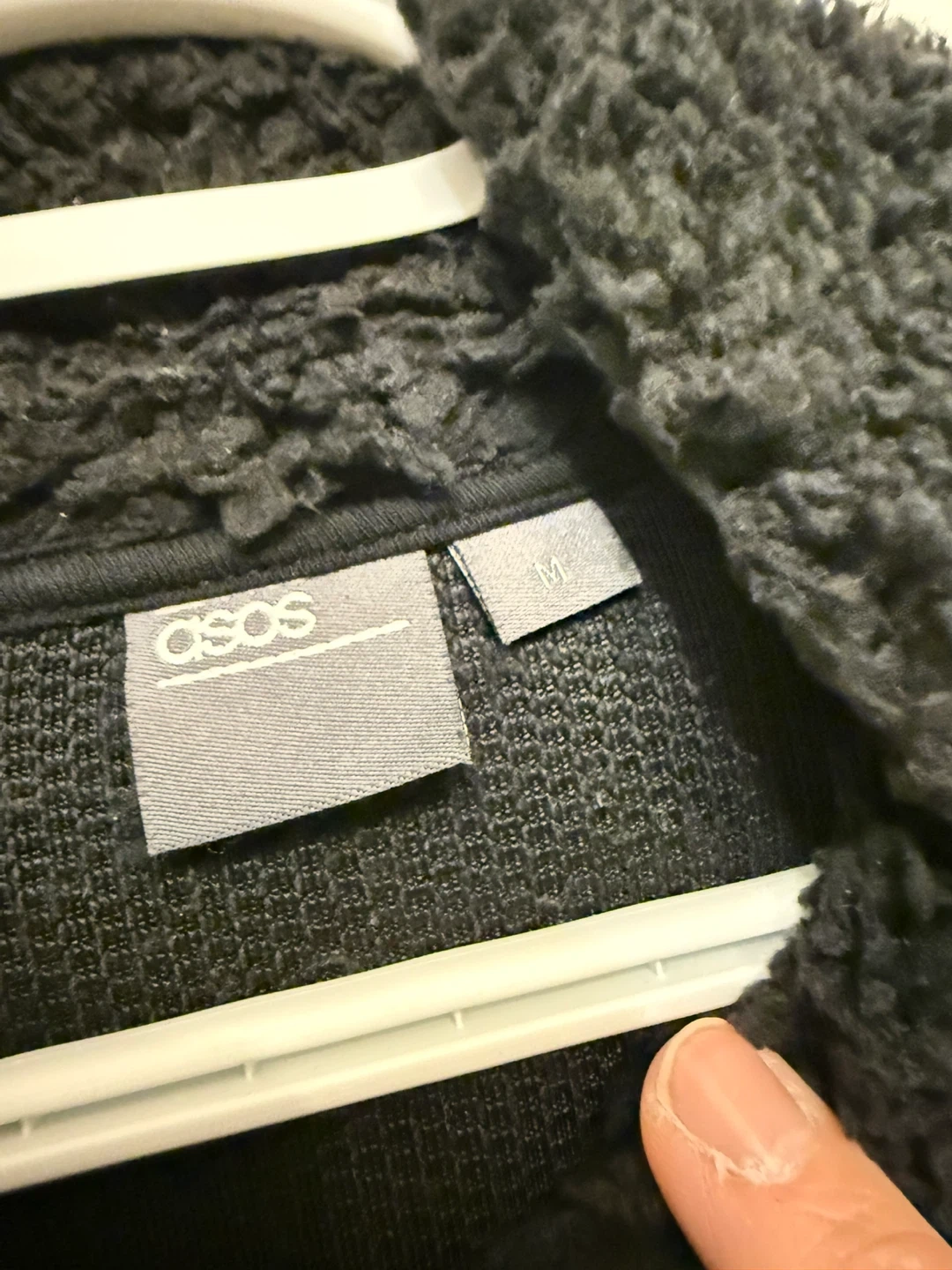 Cozy ASOS sherpa pullover in size medium! It's a super soft and comfortable piece, perfect for layering during the colder months. The black colour makes it versatile to match with anything. Great for casual wear or lounging at home