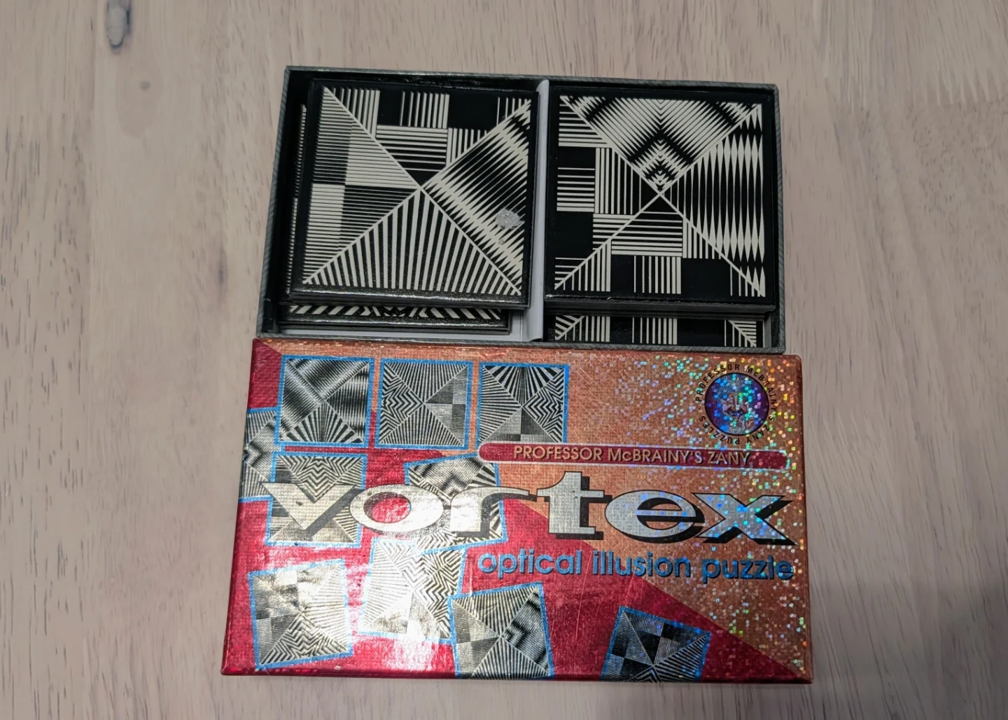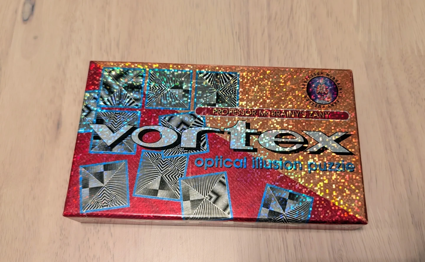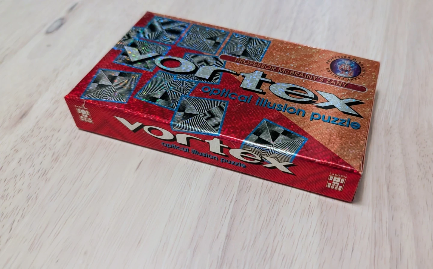It's a Vortex optical illusion puzzle from Professor McBrainy's Zany line. This puzzle comes in its original box. It's a fun challenge for anyone who enjoys optical illusions!