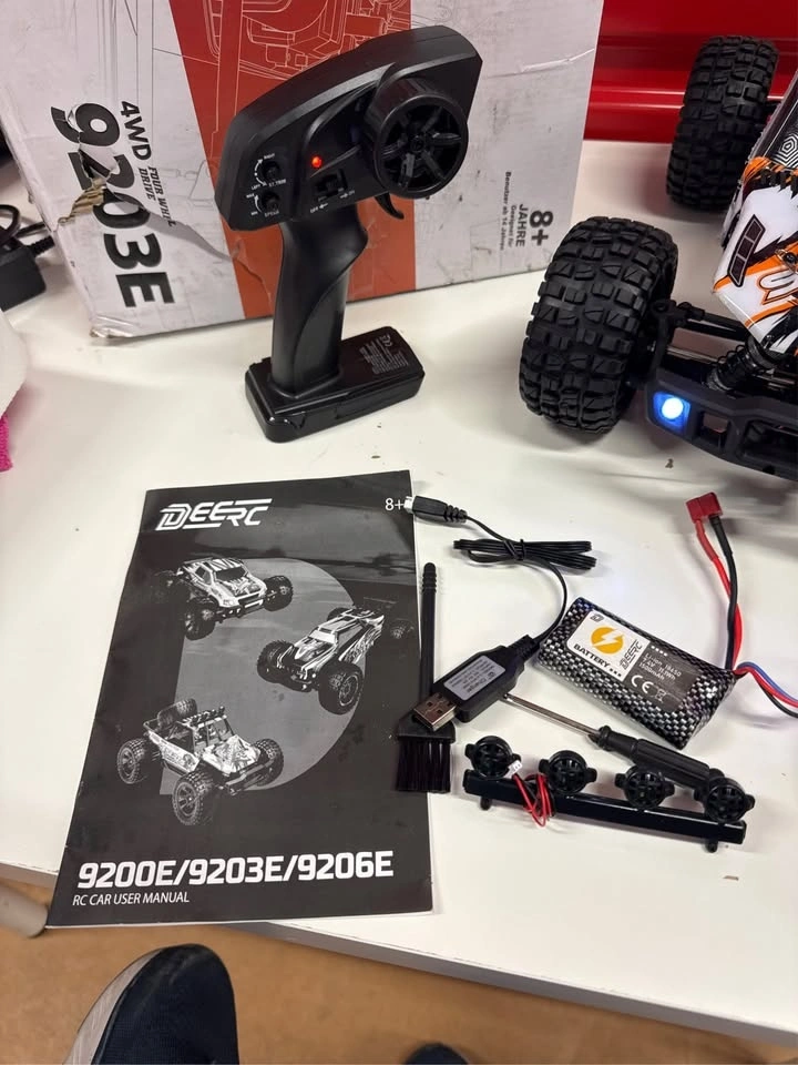 48KM/H High-Speed 1:10 RC Truck - Unleash the power of our large-scale RC car, featuring a 540 brushed motor that accelerates from 0 to 48KMH in seconds. The 30A ESC and 2.2KG torque ensure smooth handling and peak performance, delivering thrilling speed and ultimate control for every race. Unmatched Durability - This RC car features a sturdy metal drivetrain with upgraded components like dog bones, a metal differential, and gears, ensuring exceptional durability and longevity. Its ultra-durable composite chassis can handle the toughest terrains, resist impacts, and minimize damage, offering 50% more durability compared to traditional models. Supercharged Battery Life - This 1:10 RC truck is equipped with a 1500mAh high-energy density battery, offering a 5% energy density boost, reducing heat and resistance, and extending runtime by 10% for stable performance. The dual-battery setup pushes your fun to the limit, delivering an incredible 30 minutes of playtime! Full-Function Radio System - The 2.4GHz radio system offers a control range of up to 262 feet with no signal interference, allowing multiple players to race simultaneously.The upgraded full proportional remote offers precise speed and steering adjustments, delivering smooth acceleration, accurate turns, and stable handling across all terrains. Perfect for enthusiasts who crave ultimate control and performance! Action-Ready Monster Truck - This high-speed RC truck for adults features independent suspension design for both the front and rear, equipped with metal oil-filled shocks to maintain vehicle stability. Paired with non-slip rubber tires, the aggressive tread pattern helps you tackle any terrain with ease. The truck also includes an extra spare tire for quick replacement of damaged ones. Say goodbye to chassis roll and get ready for unlimited off-road adventures!