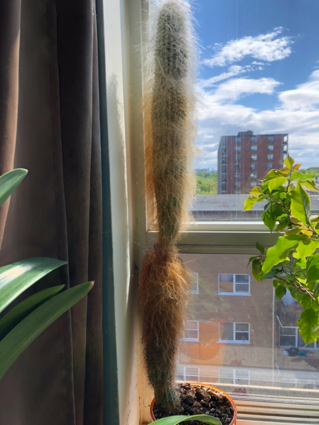 A lovely cactus with unique hairy features. Perfect for a windowsill to brighten up your home in a gentle way. 32 inches just plant plus the pot .