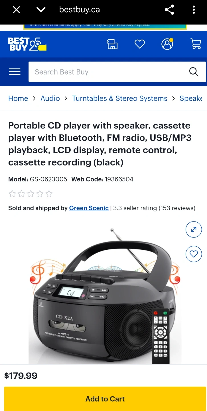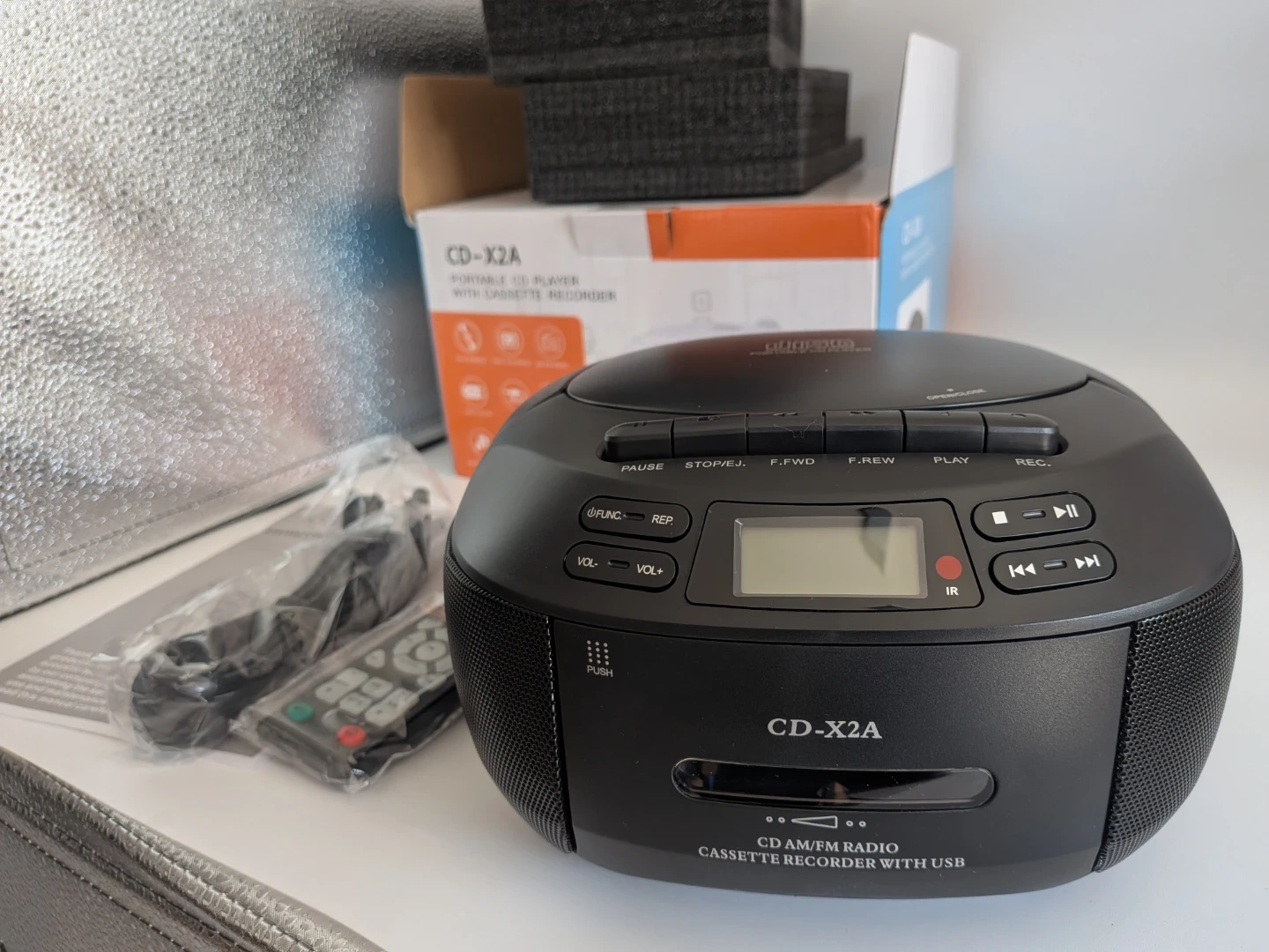 Listen to your favourite tunes with this new Memorex CD player. It has AM/FM radio, cassette player/recorder, and Bluetooth connectivity, so you can play your music from almost any source! This unit is new and has been tested to ensure that it is fully functional.