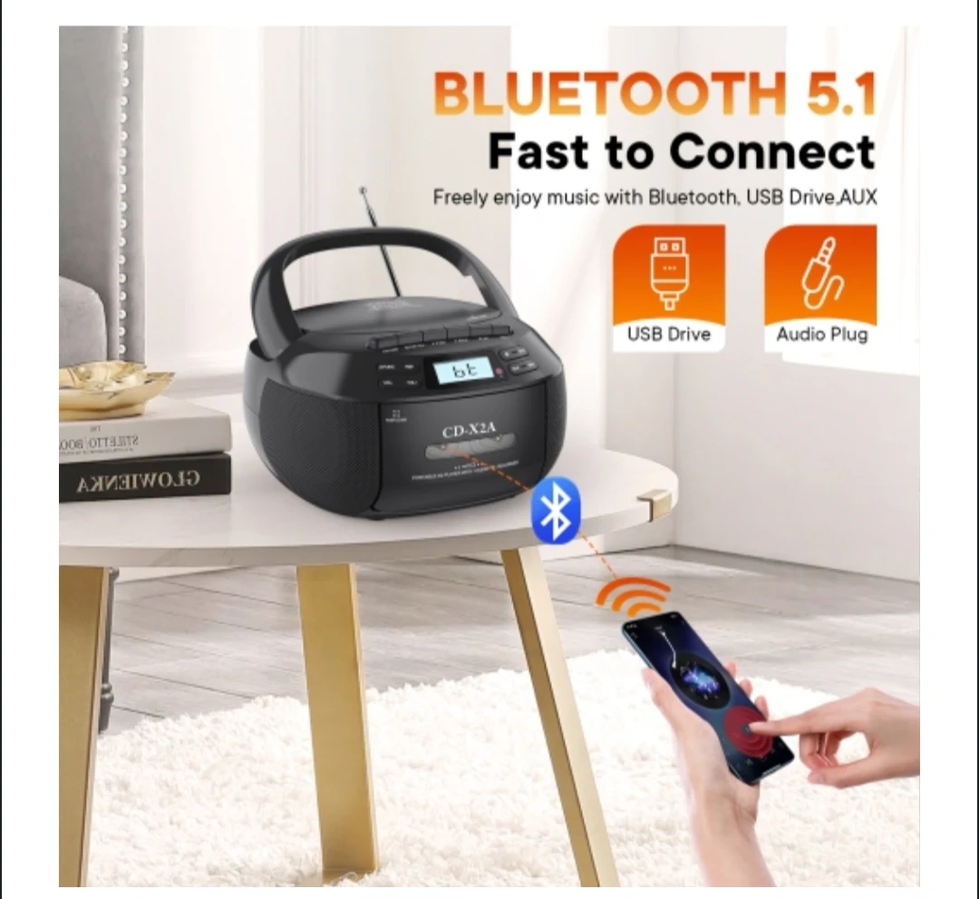 Portable CD Player with Cassette Recorder and Bluetooth π₯