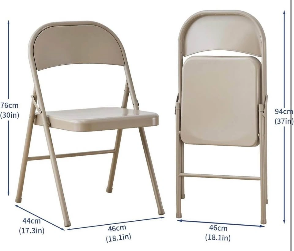 Size: 18.11"D x 17.32"W x 29.92"H (44 x 46 x 76 cm) Folding size:37"x 18" (94 x 46 cm) Load Capacity: 200 lbs. Our chairs make it perfect for those looking to accommodate multiple guests or create a cohesive seating arrangement. The set is ideal for parties, events, and gatherings, allowing everyone to have a comfortable place to sit.