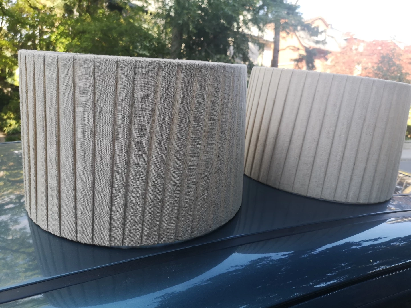 Selling a pair of beige pleated lamp shades. They are in great condition and ready to brighten up your space! The pleated design adds a touch of elegance to any room