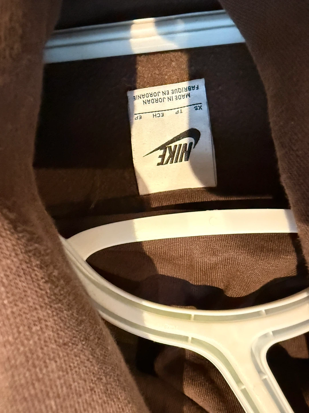 This is a brown Nike hoodie. It's a size XS unisex fits a men’s med women’s large over size