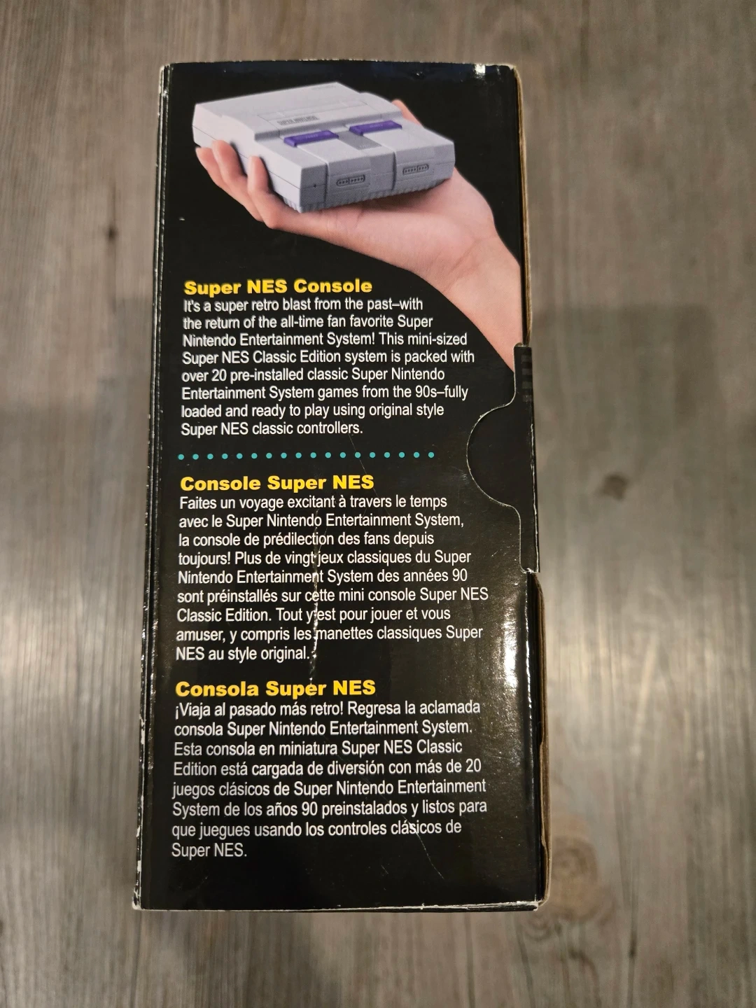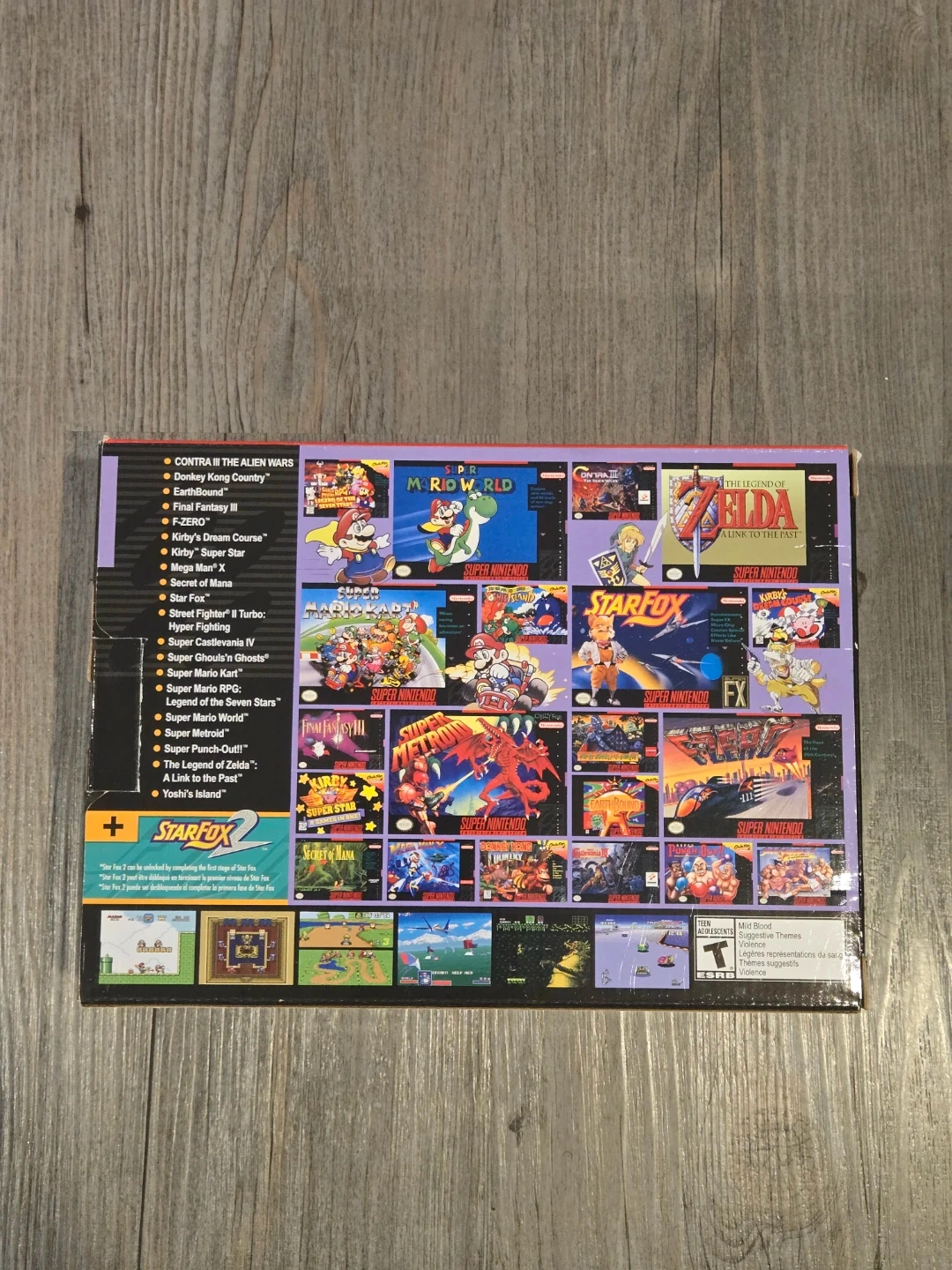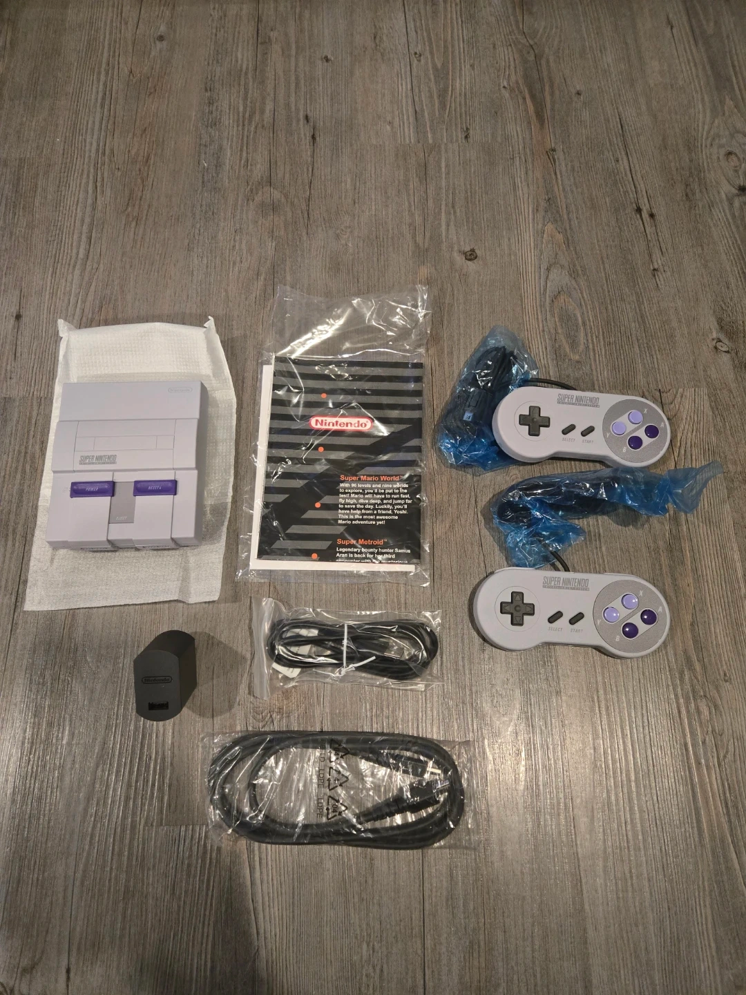 It's the Super NES Classic Edition with over 20 pre-installed games. It includes the console, two controllers, and HDMI cable. This mini system brings back classic Super NES games from the 90s!