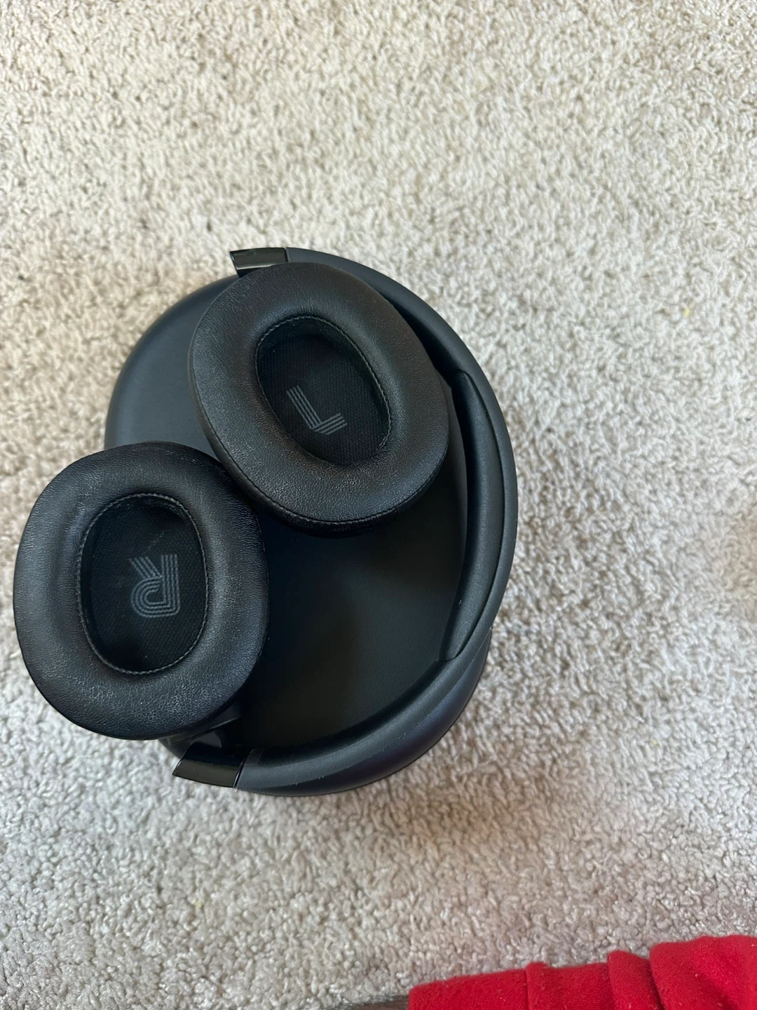 JBL over-ear headphones in black. They're comfortable and foldable. Includes left and right ear indicators.