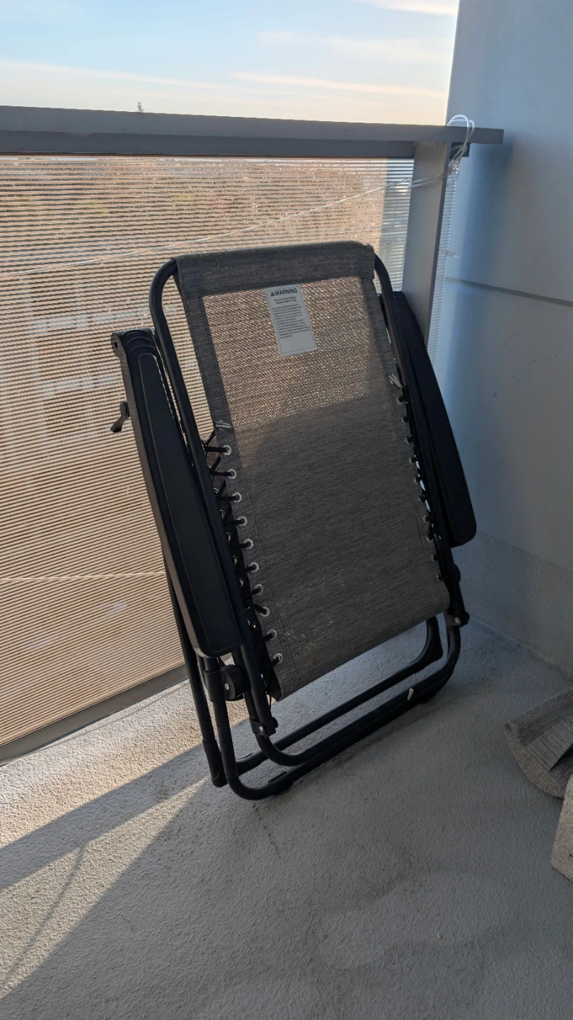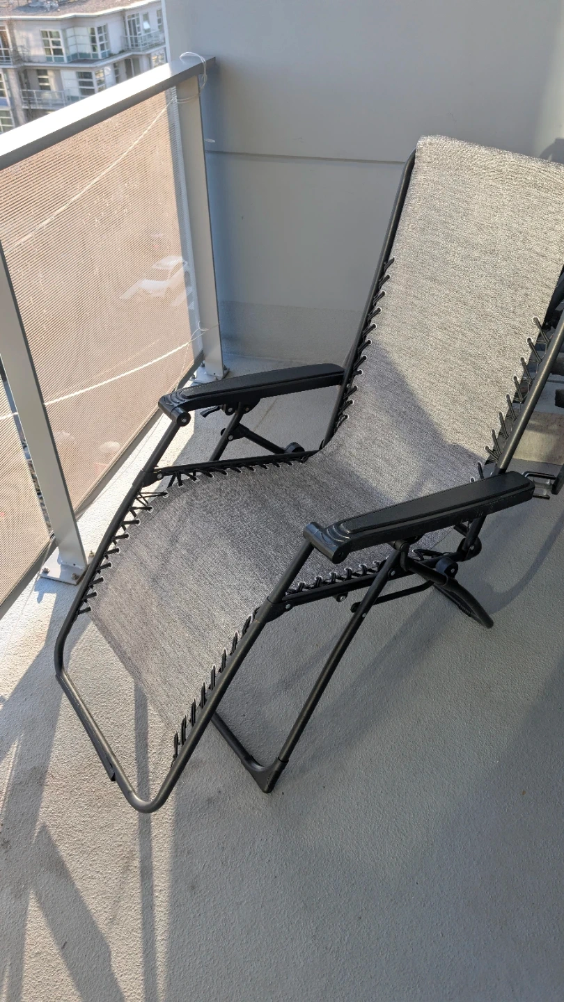 This is a foldable chair, perfect for lounging outdoors. It's made with a durable mesh fabric and a sturdy metal frame. The chair reclines for maximum comfort and can be easily stored away.