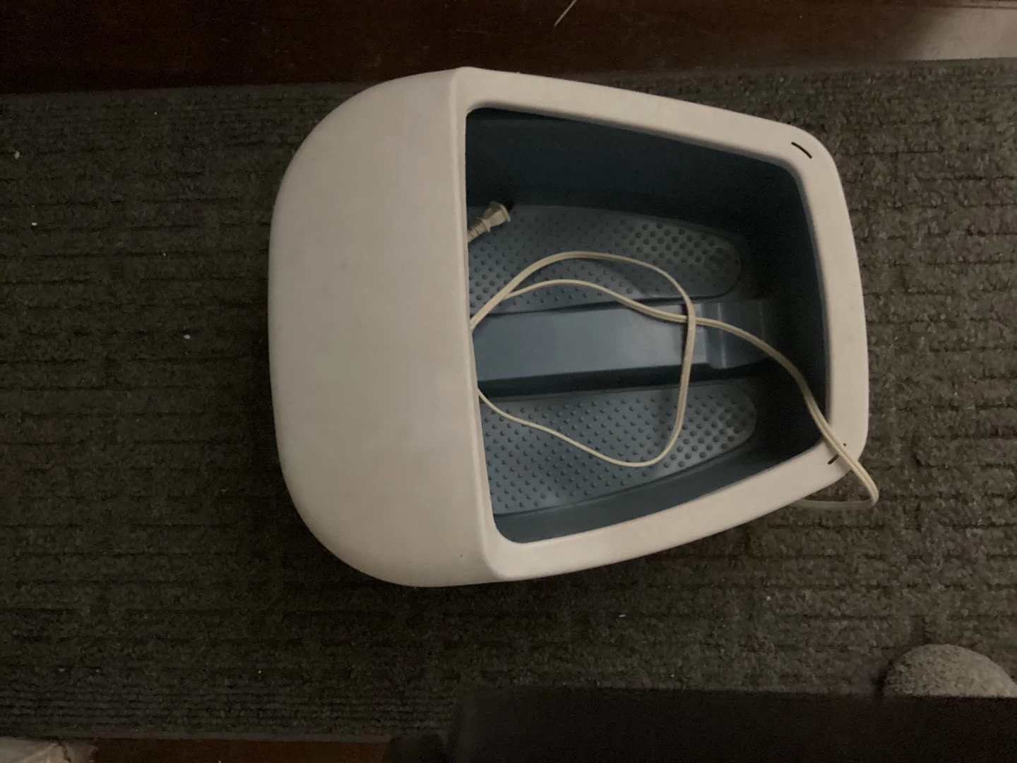This is a Deluxe Foot Saver massager that includes a heat function. It has settings for massage and heat. It's perfect for relaxing tired feet after a long day!