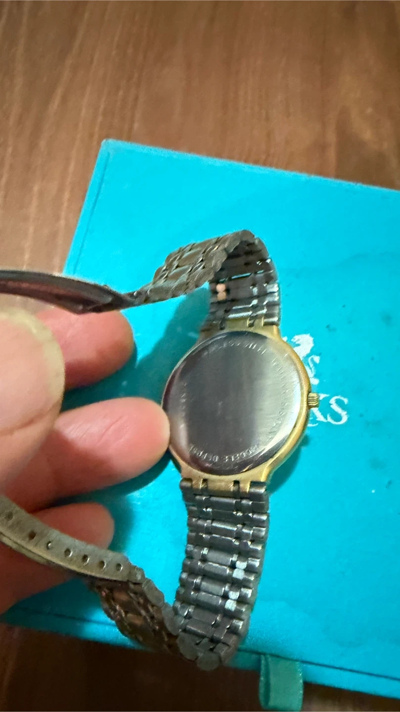 Selling a Birks quartz watch. It comes with its original box. The watch has a gold and silver band and a white face with Roman numerals. It's a stylish timepiece!