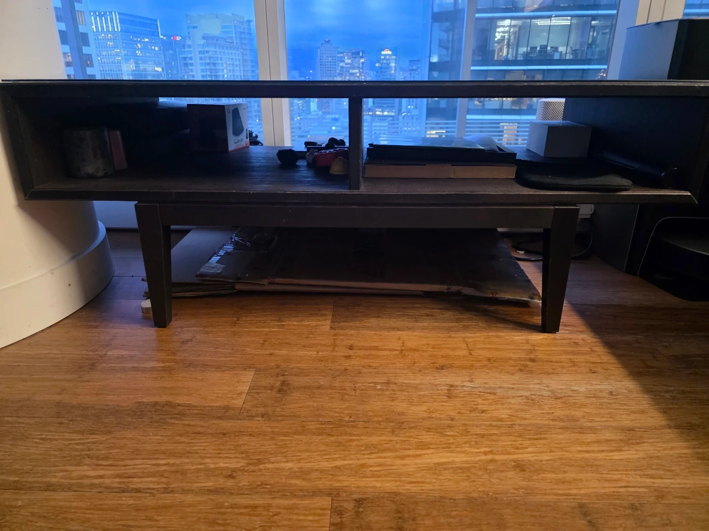 Dark Wood Media Console with Glass Top