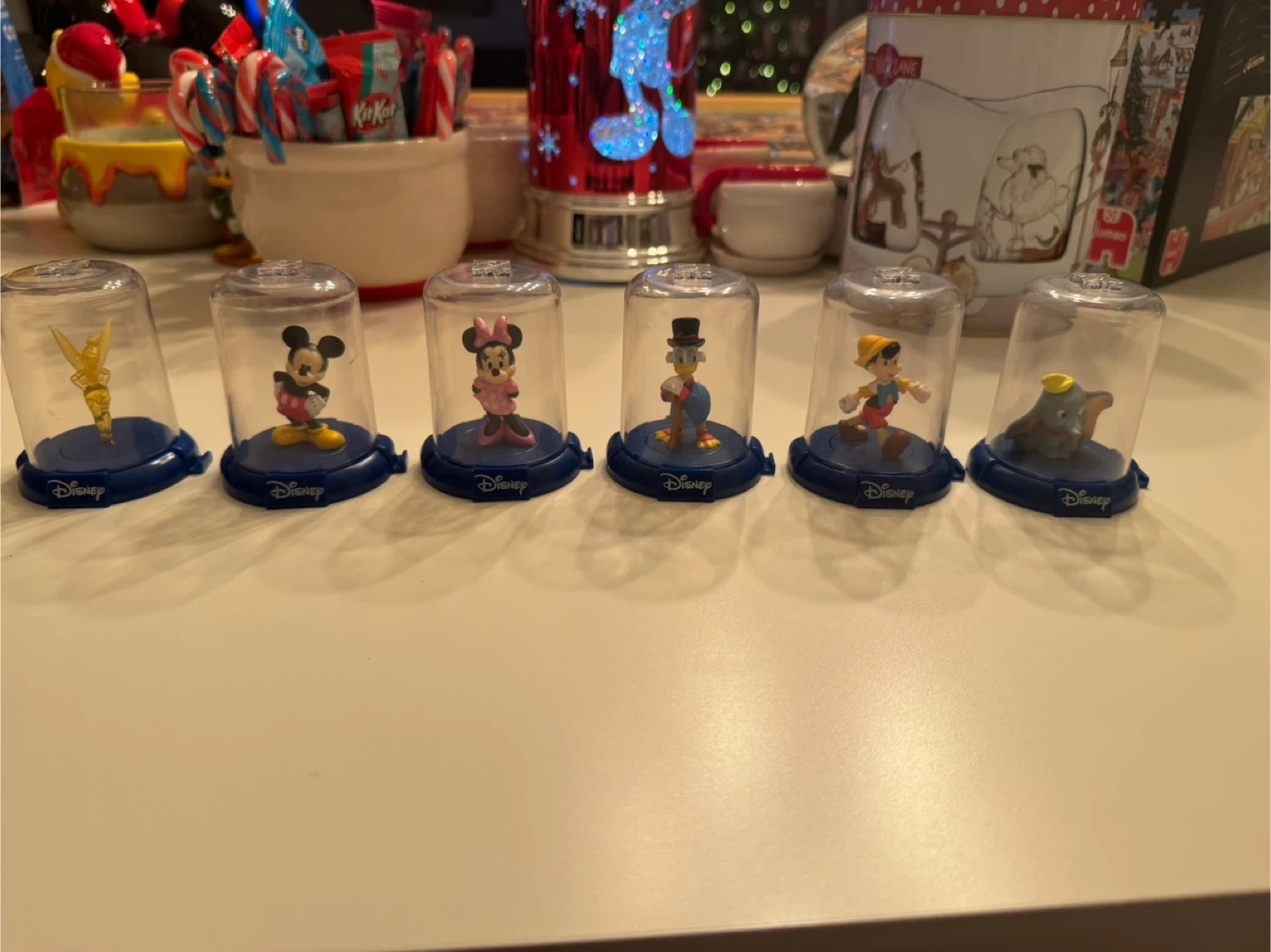 Disney figurine Domez. They feature classic characters like , Minnie, Mickey, Pinocchio, the rare gold Tinkerbell, and Dumbo. Perfect for adding a touch of Disney magic to any room! $20 for all