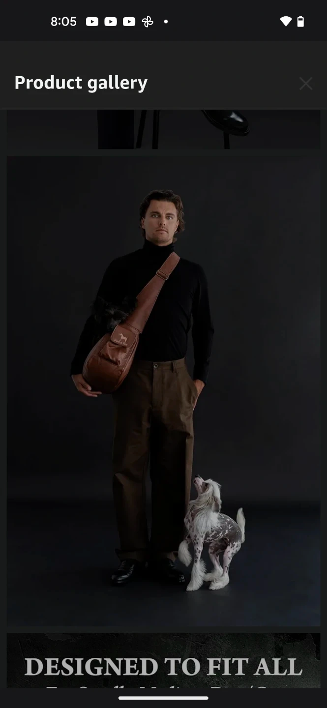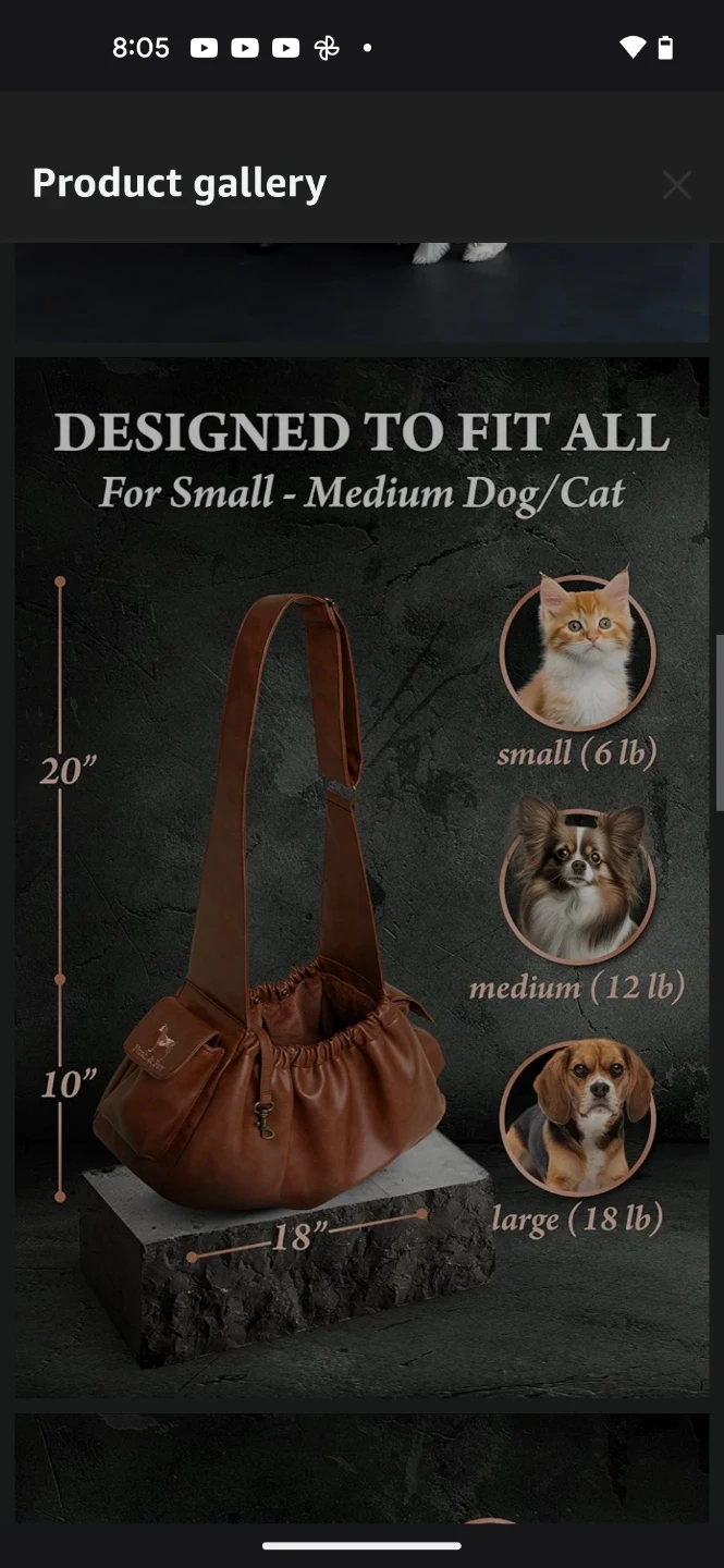 This NOAH & PAW dog sling carrier is designed for small to medium dogs. It's brown, washable, and features a padded adjustable strap, comfortable fur lining, and storage pockets. It's safe and secure for your pet!