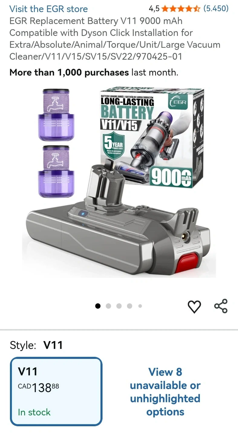 This is a new EGR replacement battery designed for Dyson V11/V15 vacuum cleaners.