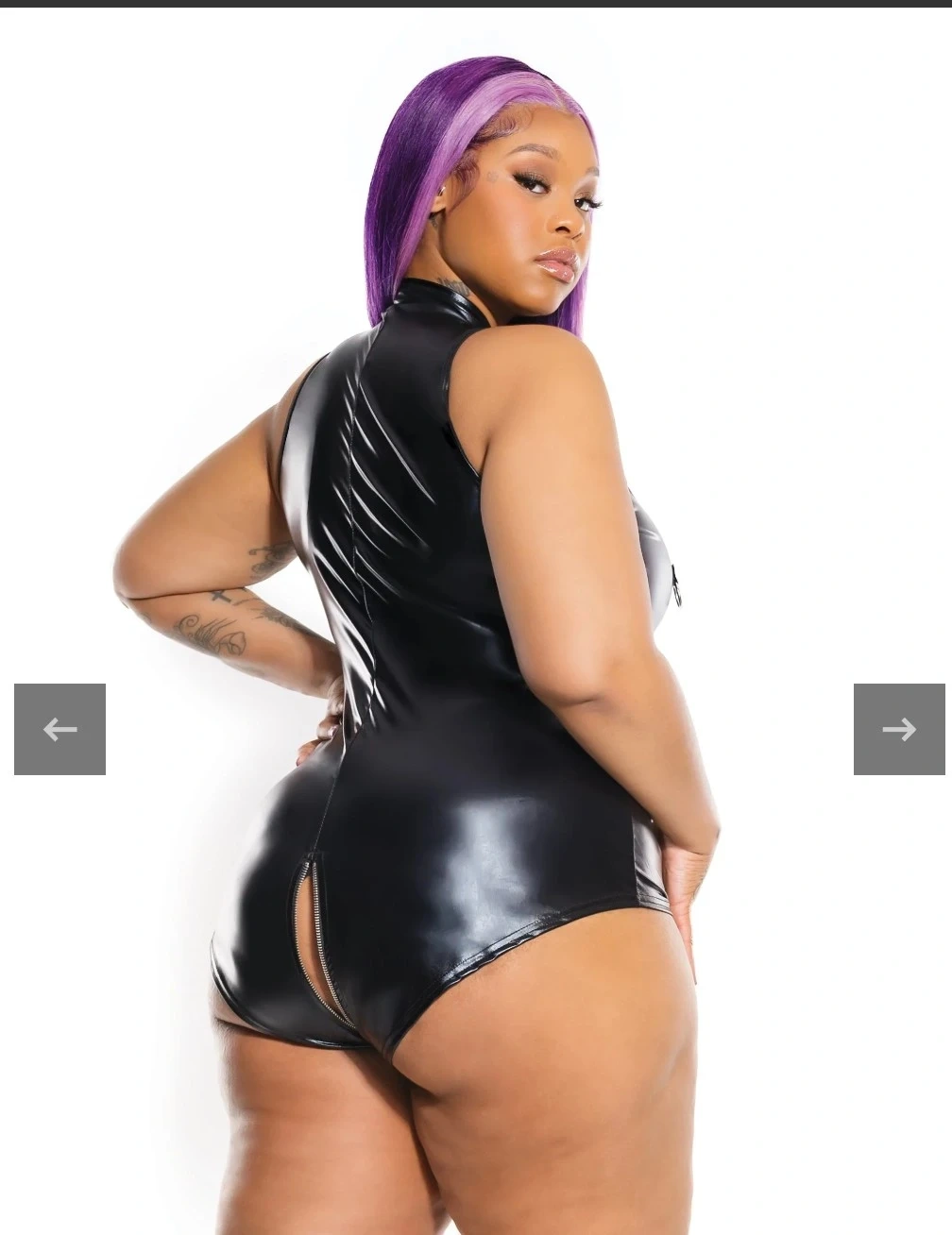 Experience both style and functionality with the front-to-back 2-way metal zipper, reinforced with hook & eye closures for added durability. The metal ring and rivet details add a touch of edginess, while the booty short cut and silver tone hardware complete the look with a sleek and modern touch.