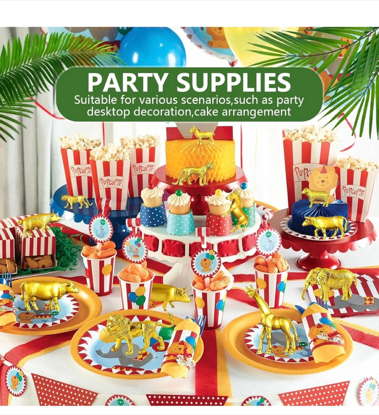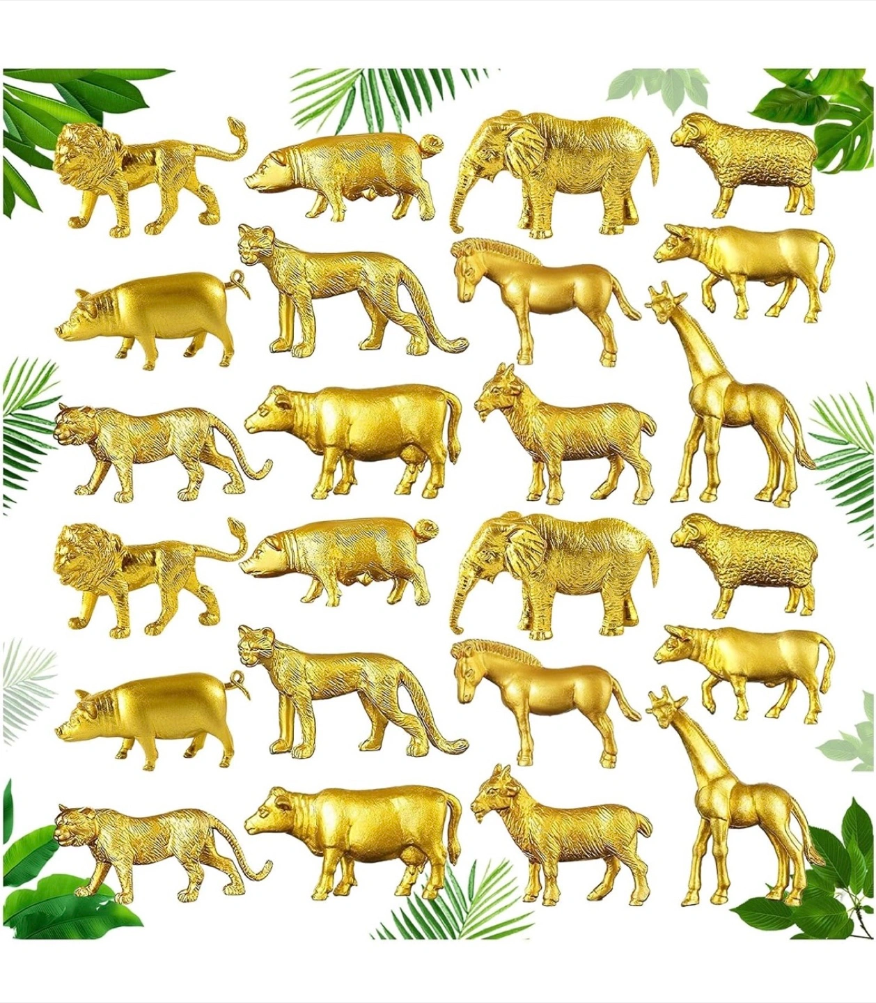 Selling a set of 48 gold animal figurines! These mini-sized toys come in 12 different styles, with 4 of each animal. They're great for cake decorations, party supplies, or just for fun!