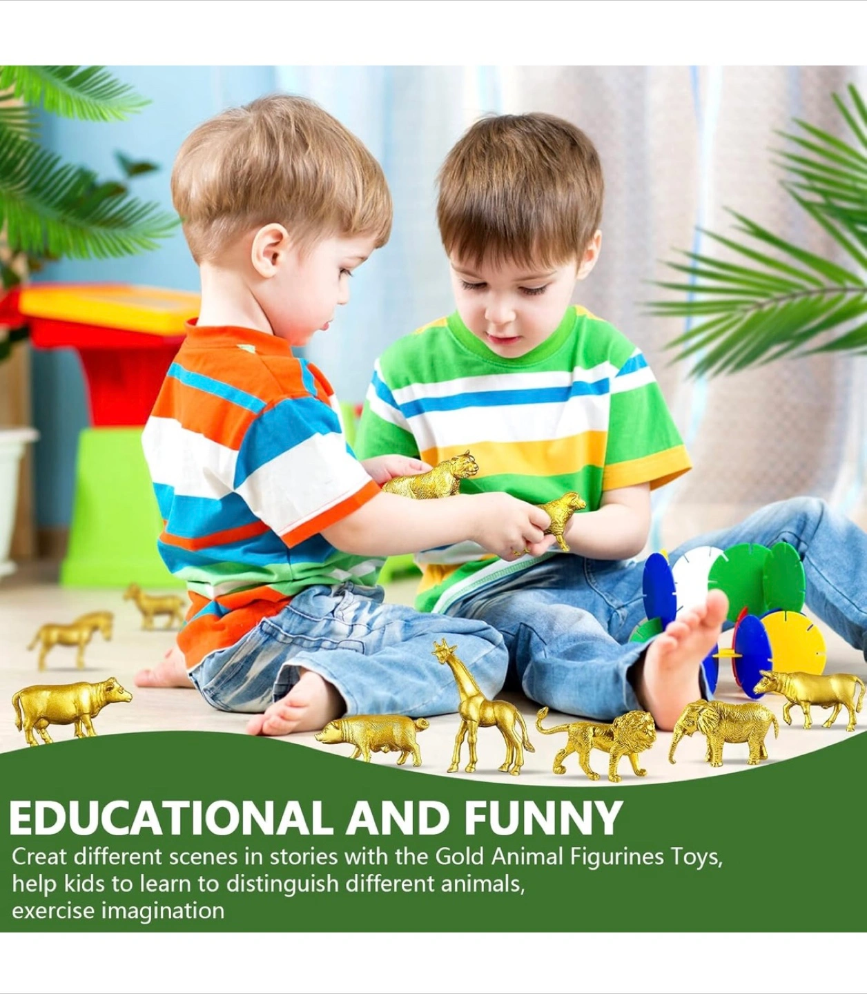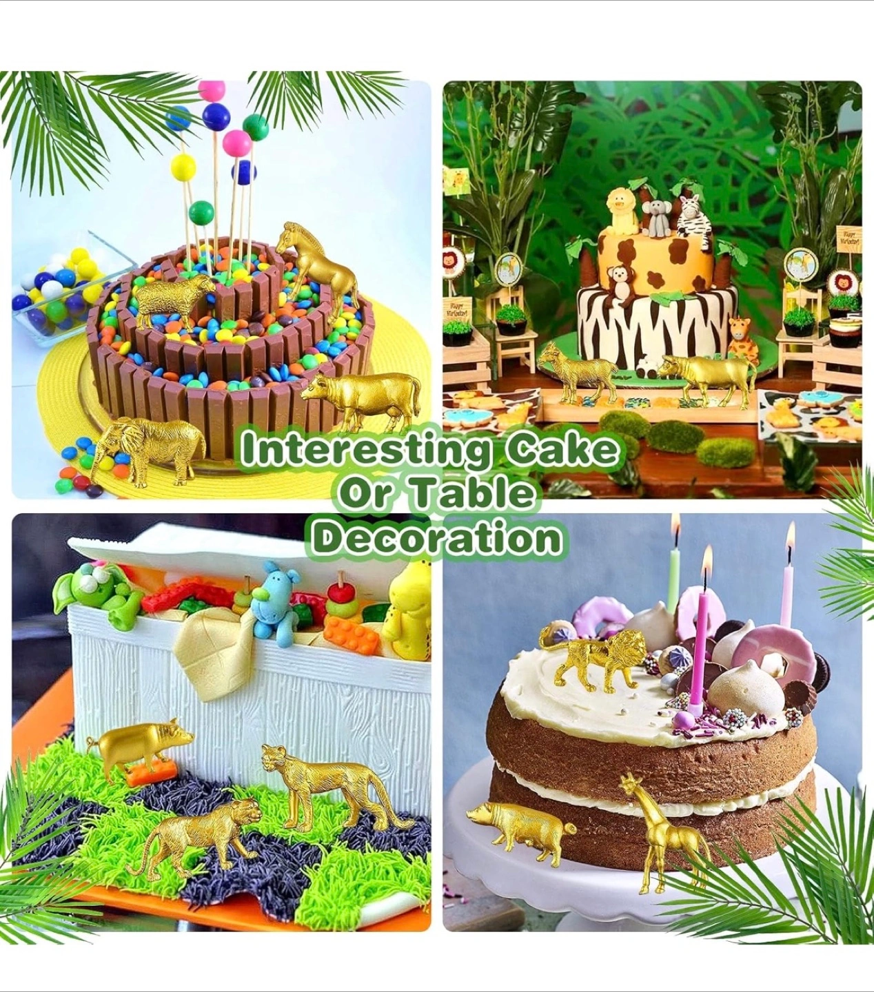 48 Pcs Gold Plastic Animal Figurines, Gold Safari Animals Figures with Jungle Animal Elephant Lion Decor, Mini Safari Figurines Decor Cake Toppers for Themed Birthday Gatherings