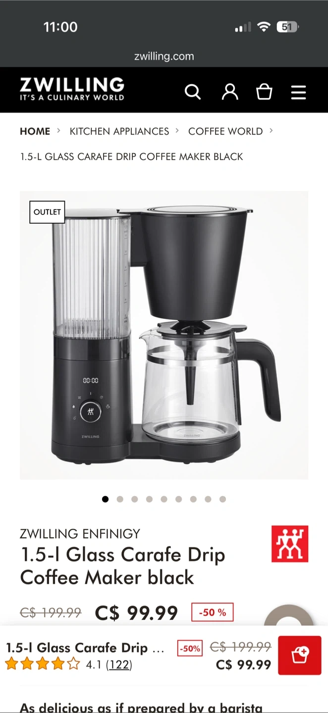 ZWILLING ENFINIGY 1.5L Glass Carafe Drip Coffee Maker - Black