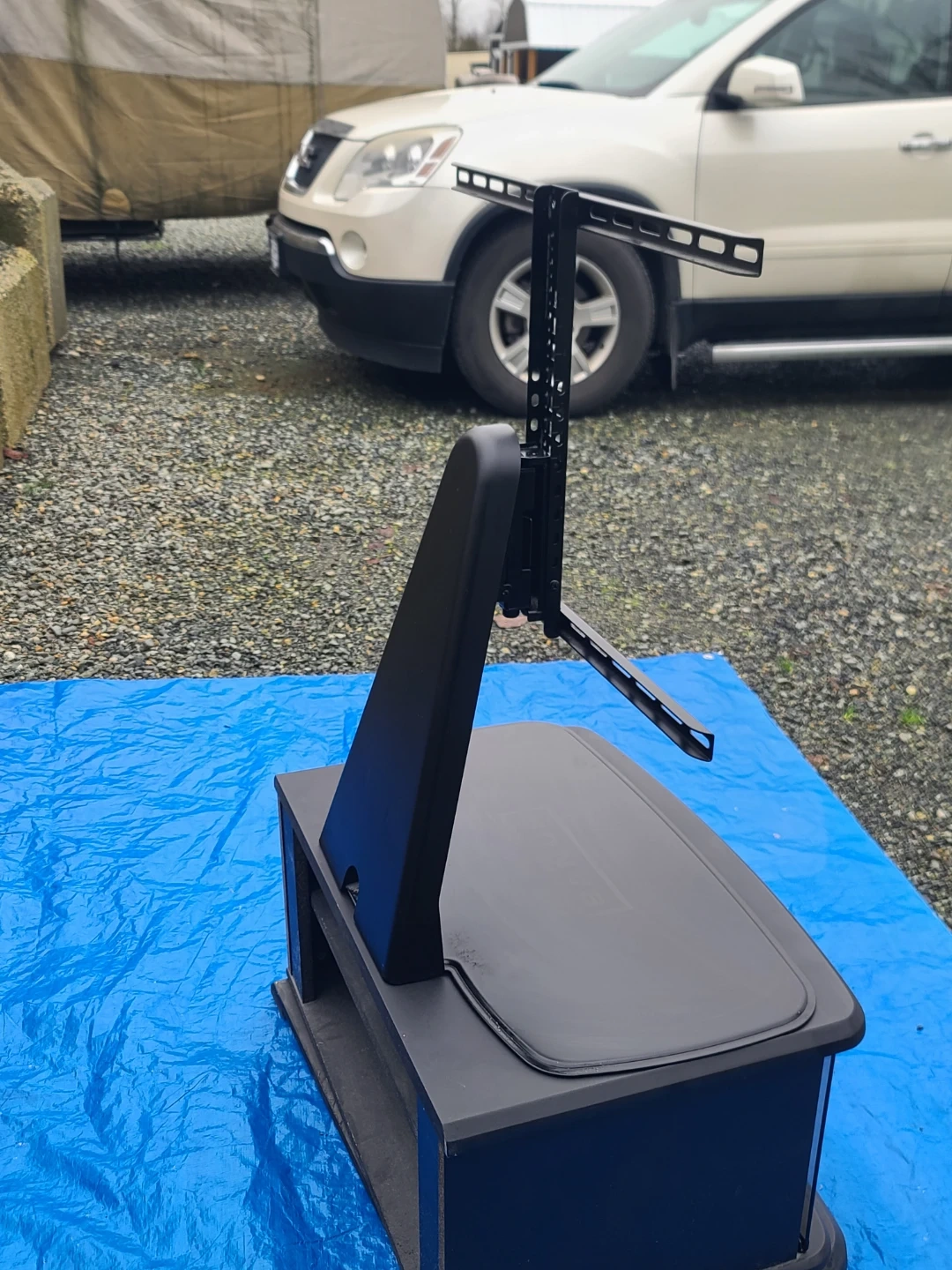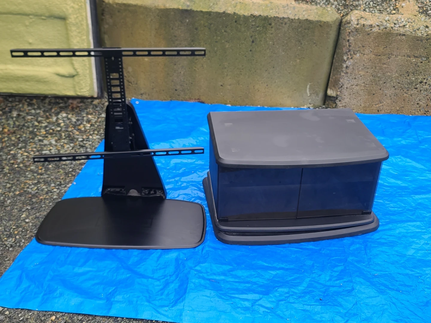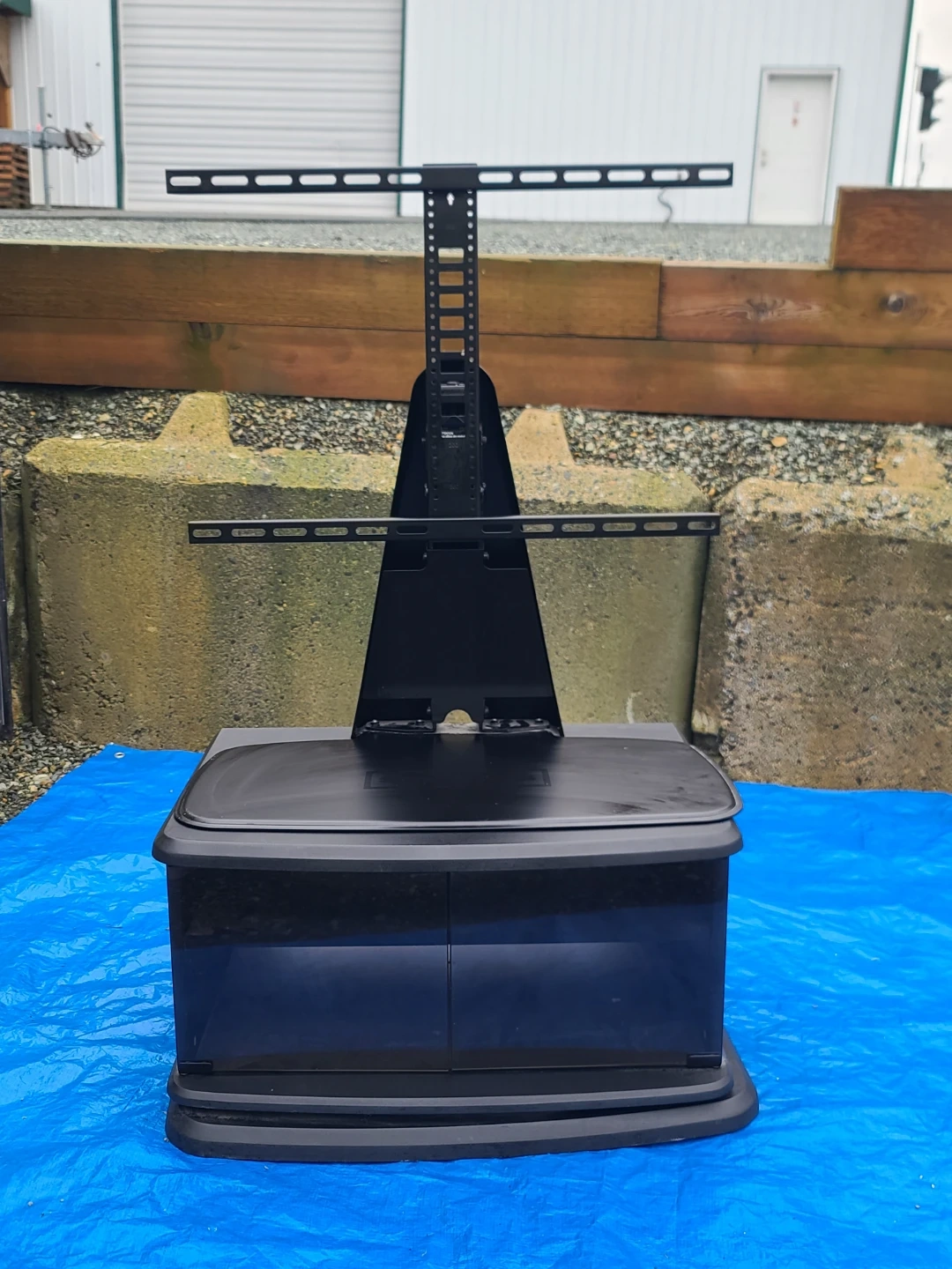 A black TV stand that comes with a mount. It's in good condition and ready to hold your television. Perfect for any living room or entertainment area! Delivery can be arranged. Viewing and pickup by appointment.