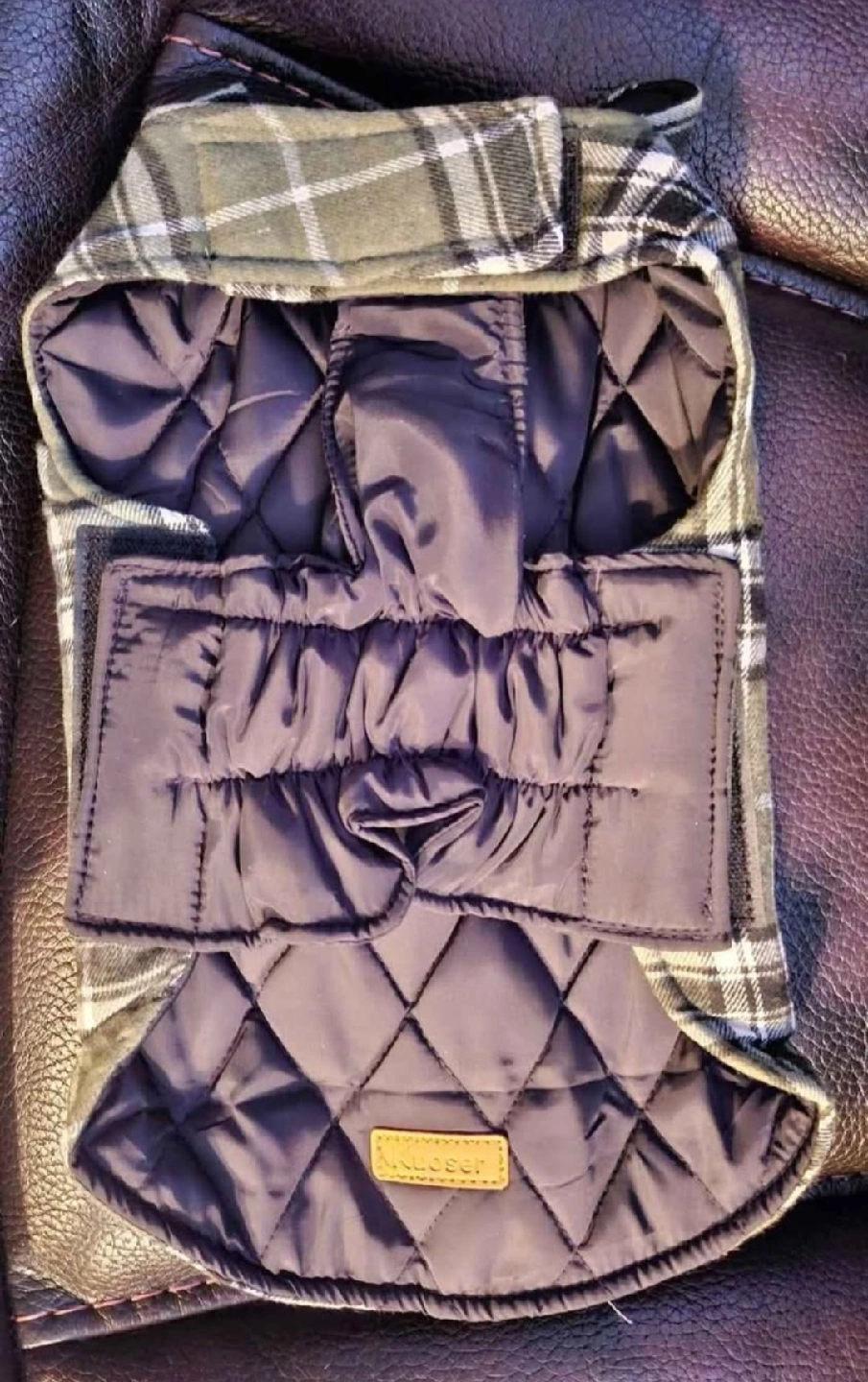 Keep your furry friend warm and stylish with this Kyeese dog coat! It's a cozy jacket vest perfect for small to medium-sized dogs. The green plaid design is super cute, and the quilted interior will keep your pup comfy in cold weather. Size is Small.